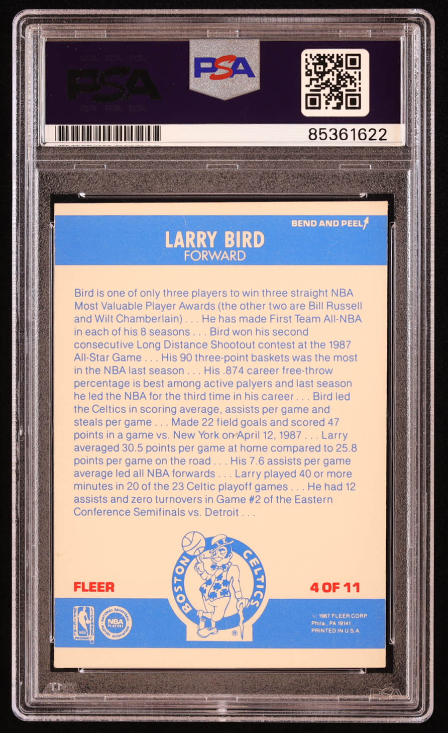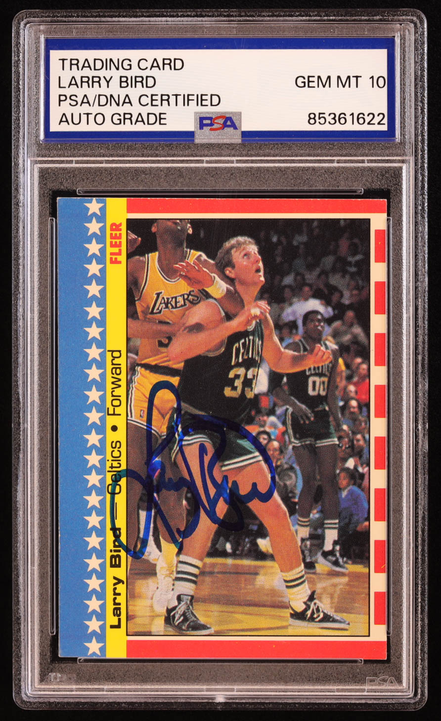 Larry Bird Signed 1987-88 Fleer Stickers #4 (PSA | Autograph Grade 10)