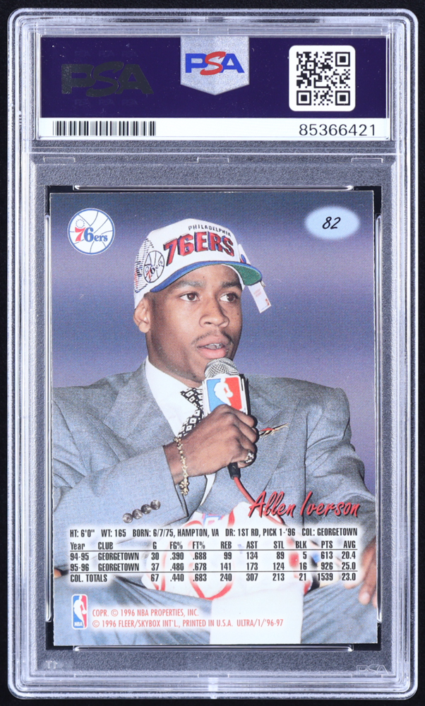Allen Iverson Signed 1996-97 Ultra #82 RC (PSA | Autograph Graded PSA 10)
