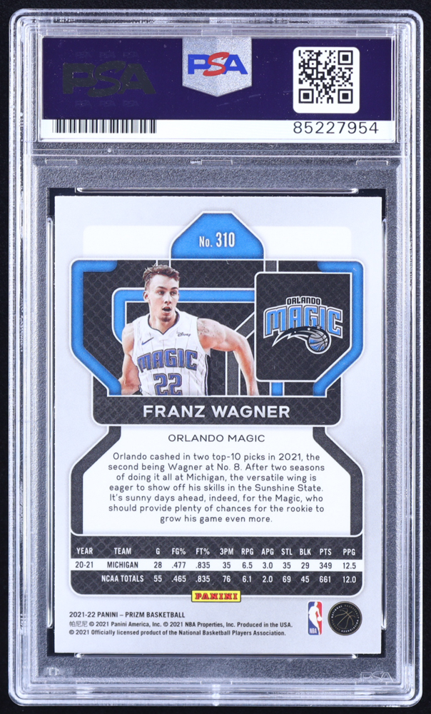 Franz Wagner Signed 2021-22 Panini Prizm #310 RC (PSA | Autograph Graded PSA 10)