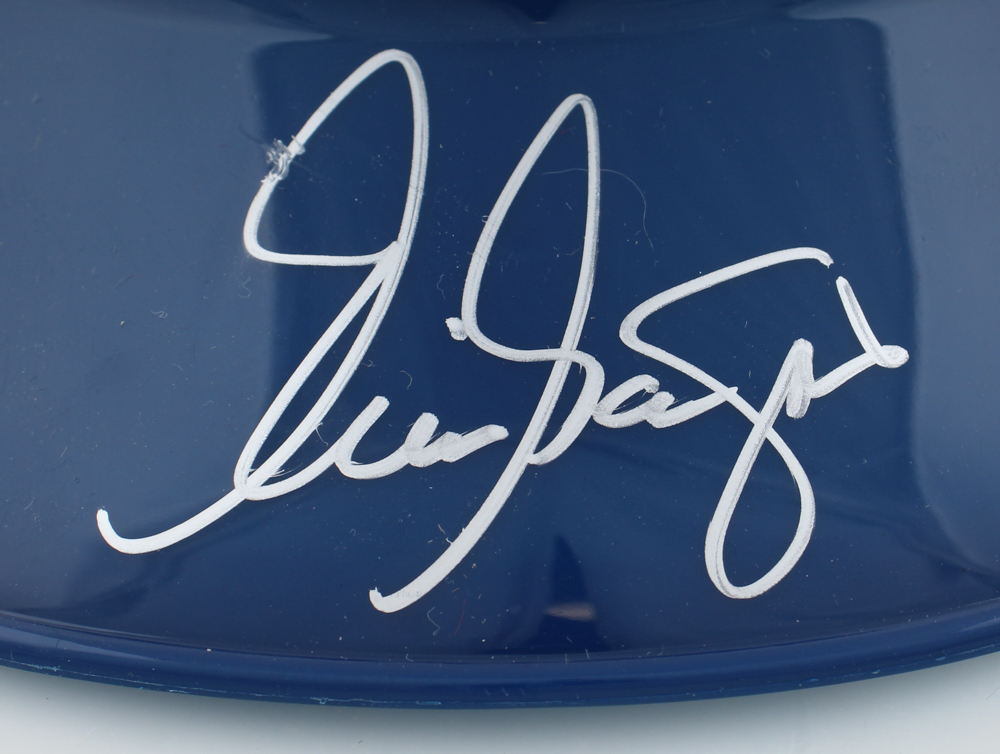 Los Angeles Dodgers full-size replica plastic souvenir helmet. Hand-signed by Eric Gagne. Please note, the signature has smudged.