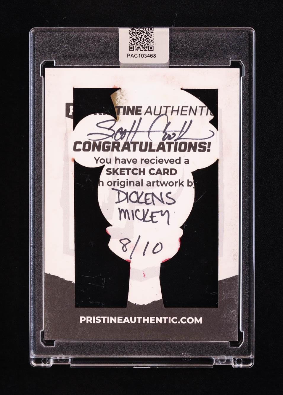 This original sketch card includes original art by award winning Walt Disney artist, Scott Cook. The card is hand-signed along with a character name inscription on the back by the artist.