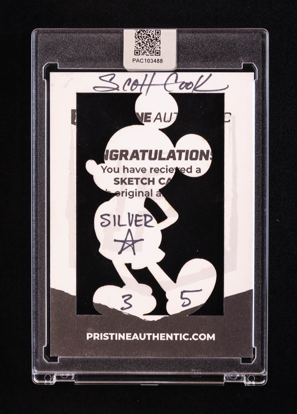 This original sketch card includes original art by award winning Walt Disney artist, Scott Cook. The card is hand-signed along with a character name inscription on the back by the artist.