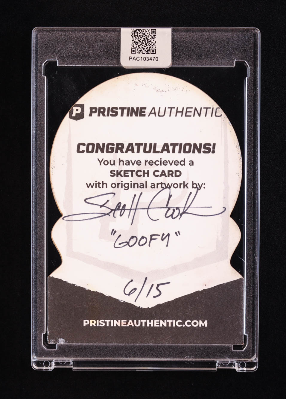 This original sketch card includes original art by award winning Walt Disney artist, Scott Cook. The card is hand-signed along with a character name inscription on the back by the artist.