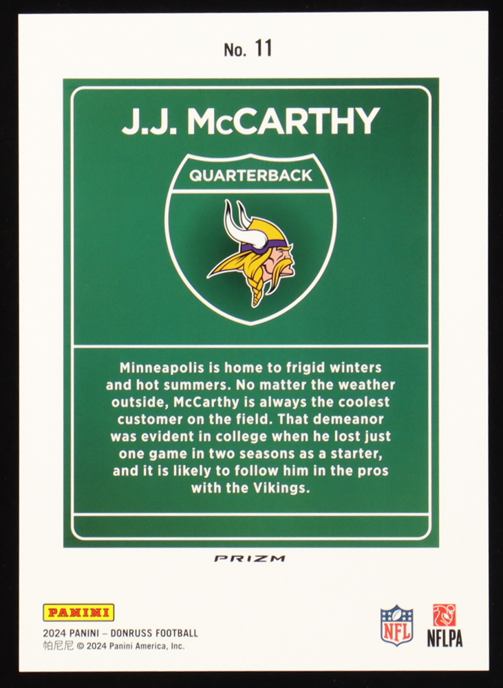 JJ McCarthy 2024 Donruss Downtown! Oversize #11 RC
