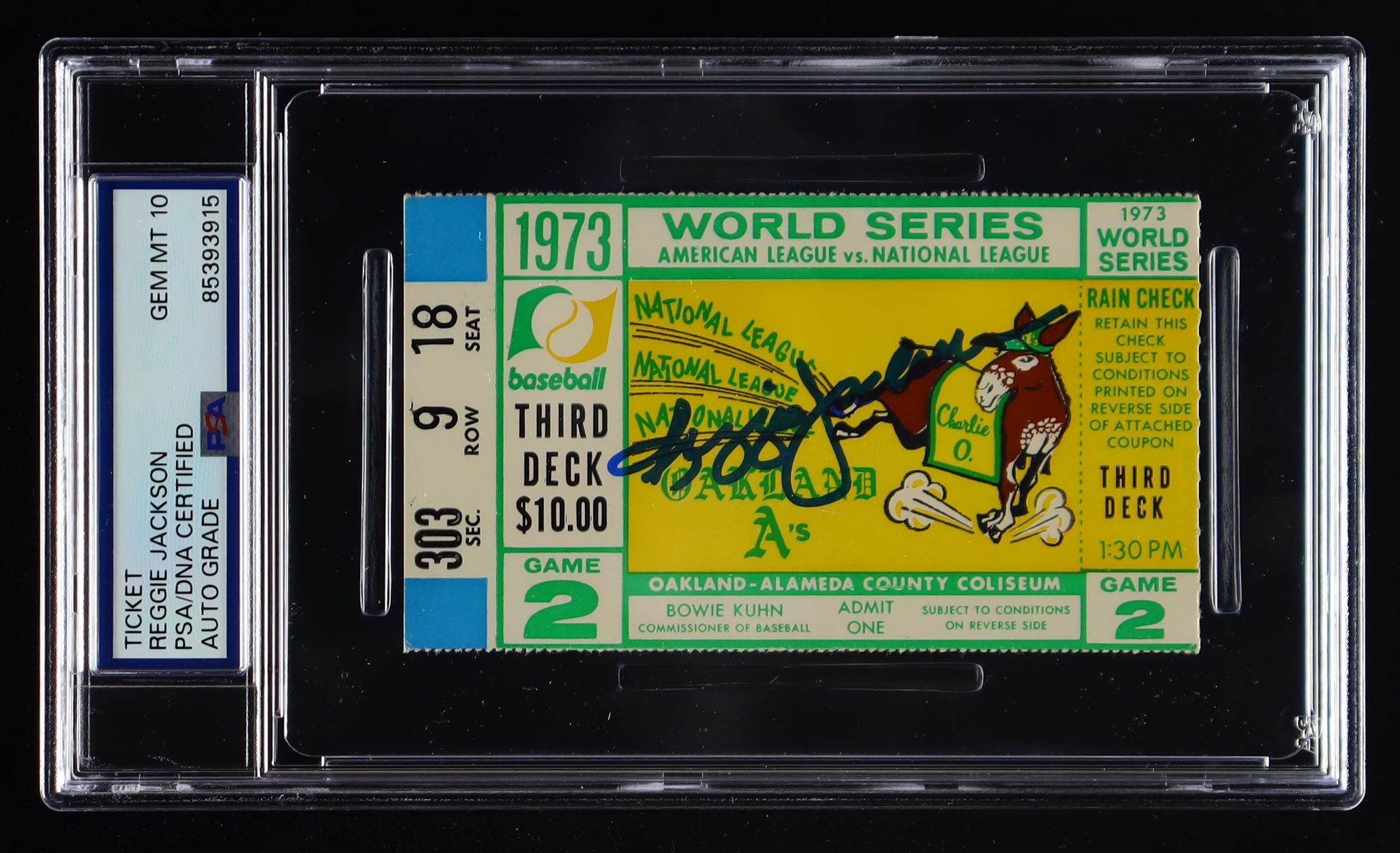 Reggie Jackson Signed 1973 Athletics World Series Game 2 Ticket (PSA | Auto Grade 10)