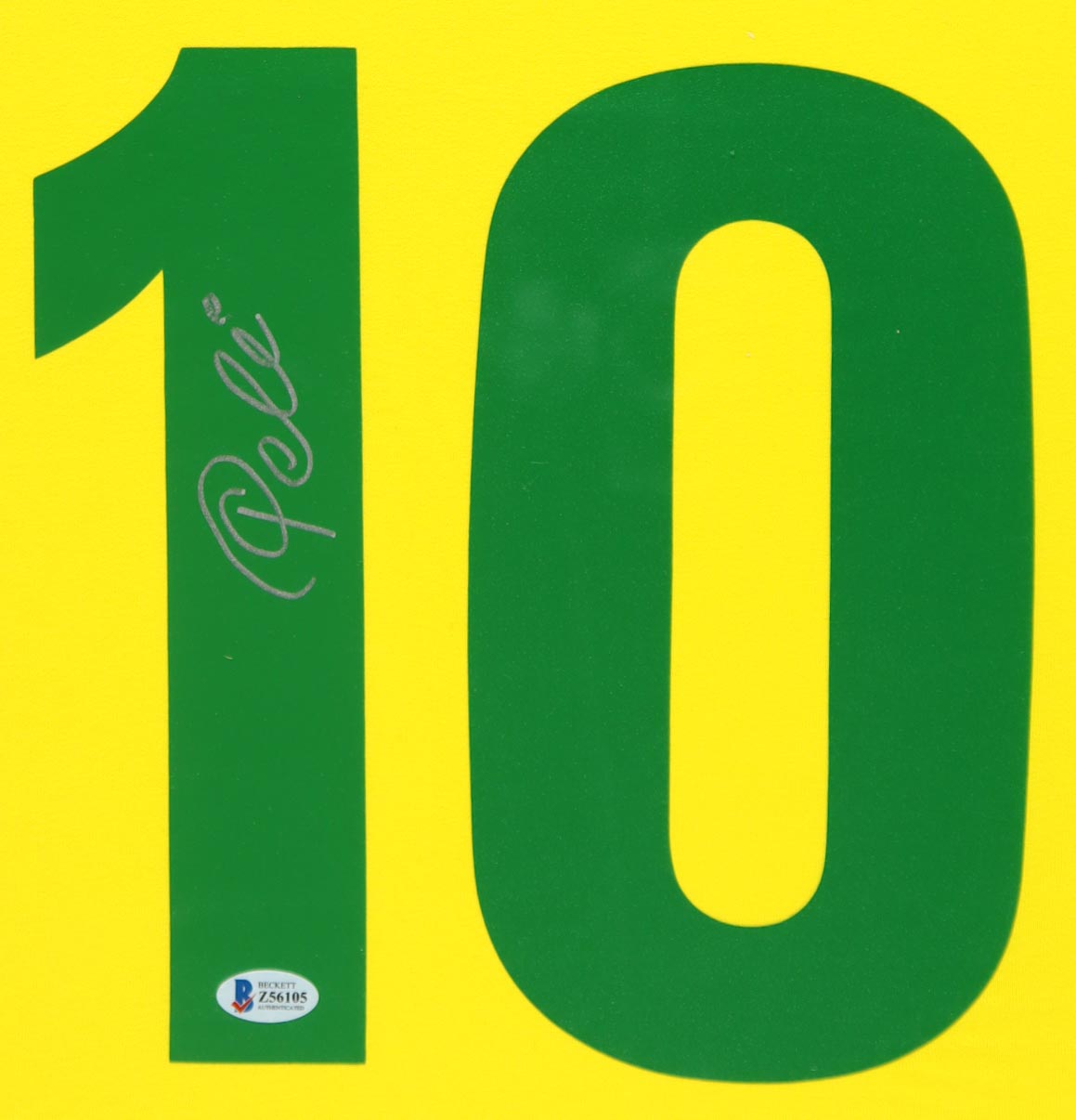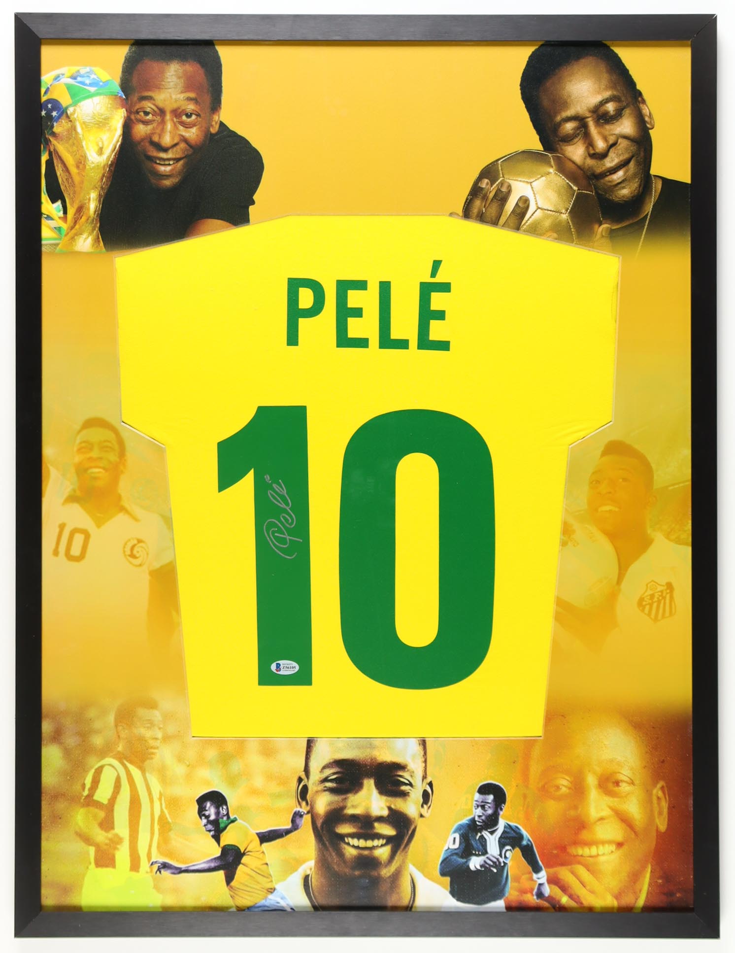 Custom frame measures approximately 25" x 33" in size and features a jersey that has been hand-signed by Pele (D. 2022, HOF).