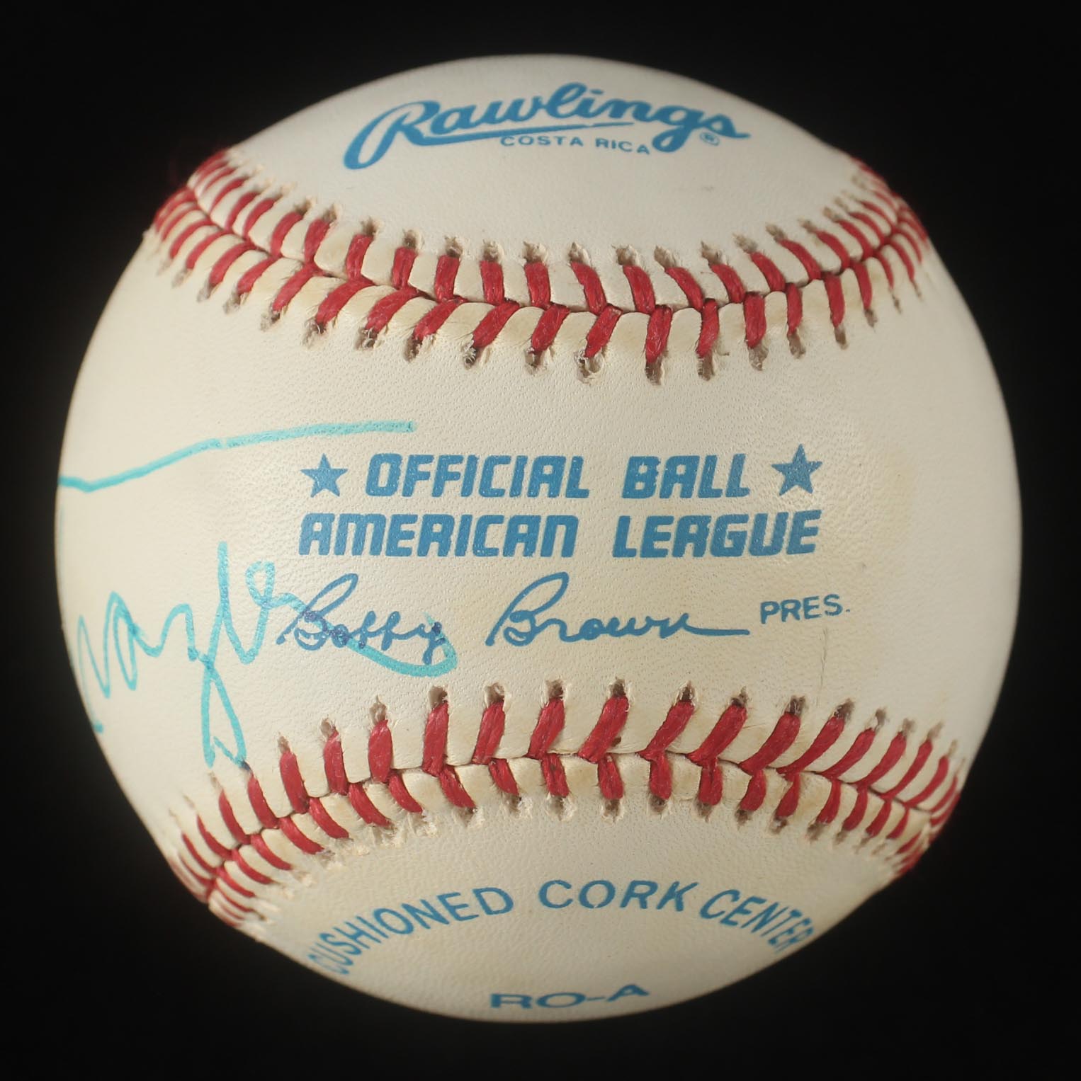 Rawlings Official American League Baseball has been hand-signed by Joe Frazier (D. 2011, HOF).