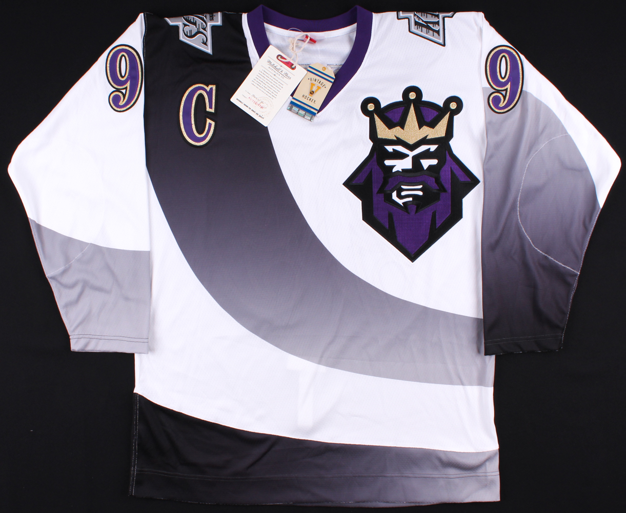 After the All-Star break during the 1995-96 season, the NHL rolled out its third jersey program and the L.A. Kings new sweaters effectively became known as the "Burger King" jersey. The uniform only lasted one season and it was the same season in which Wayne Gretzky played 62 games and finished with 81 points for the Kings. The original design for the new logo was meant to go on a black background but the NHL wanted these jerseys to be worn for home games, which at that time were white. The "Burger King" jersey may go down as one of the most unique NHL uniforms with its strange logo and unique color scheme. The Kings third Jersey was worn a total of eight times in 1996.