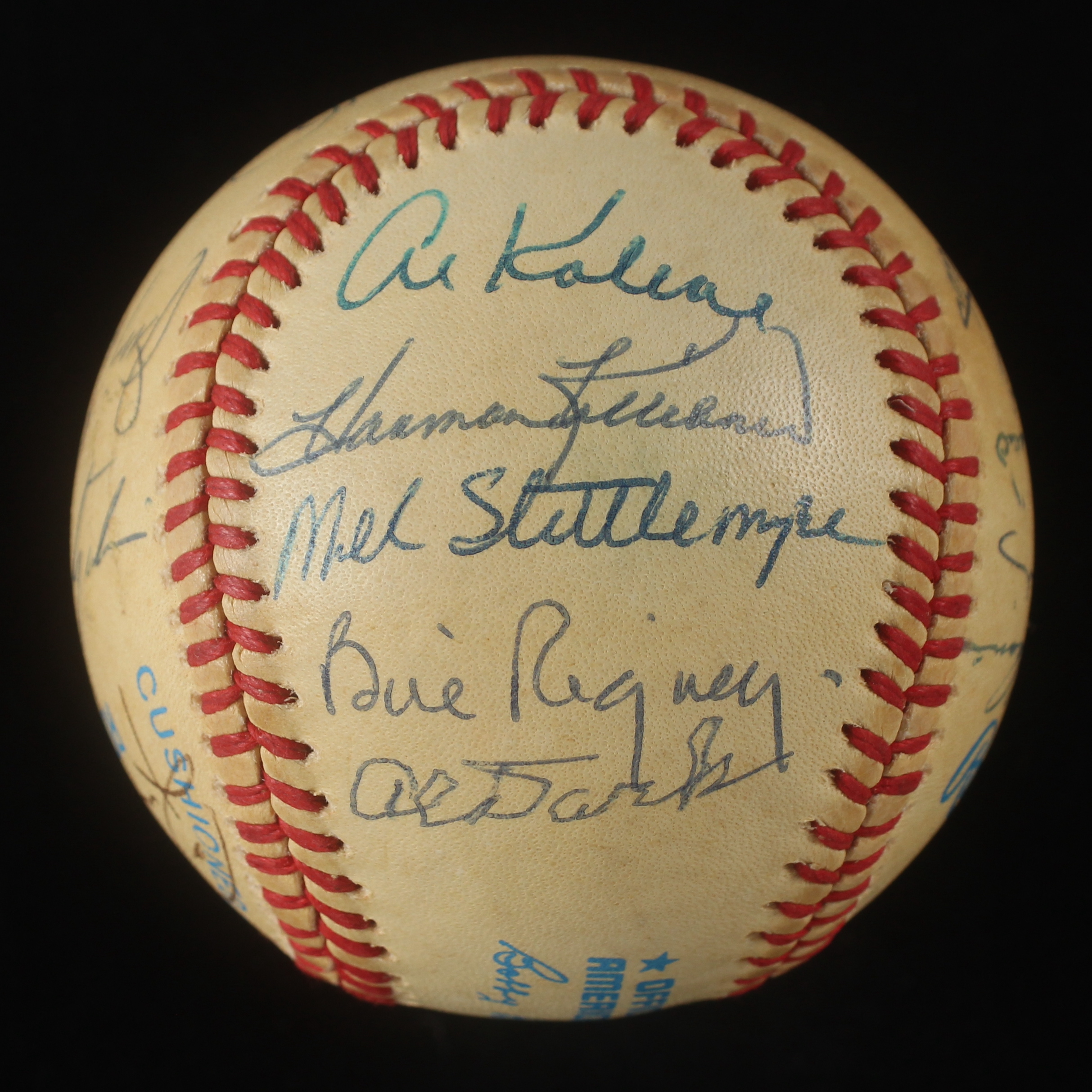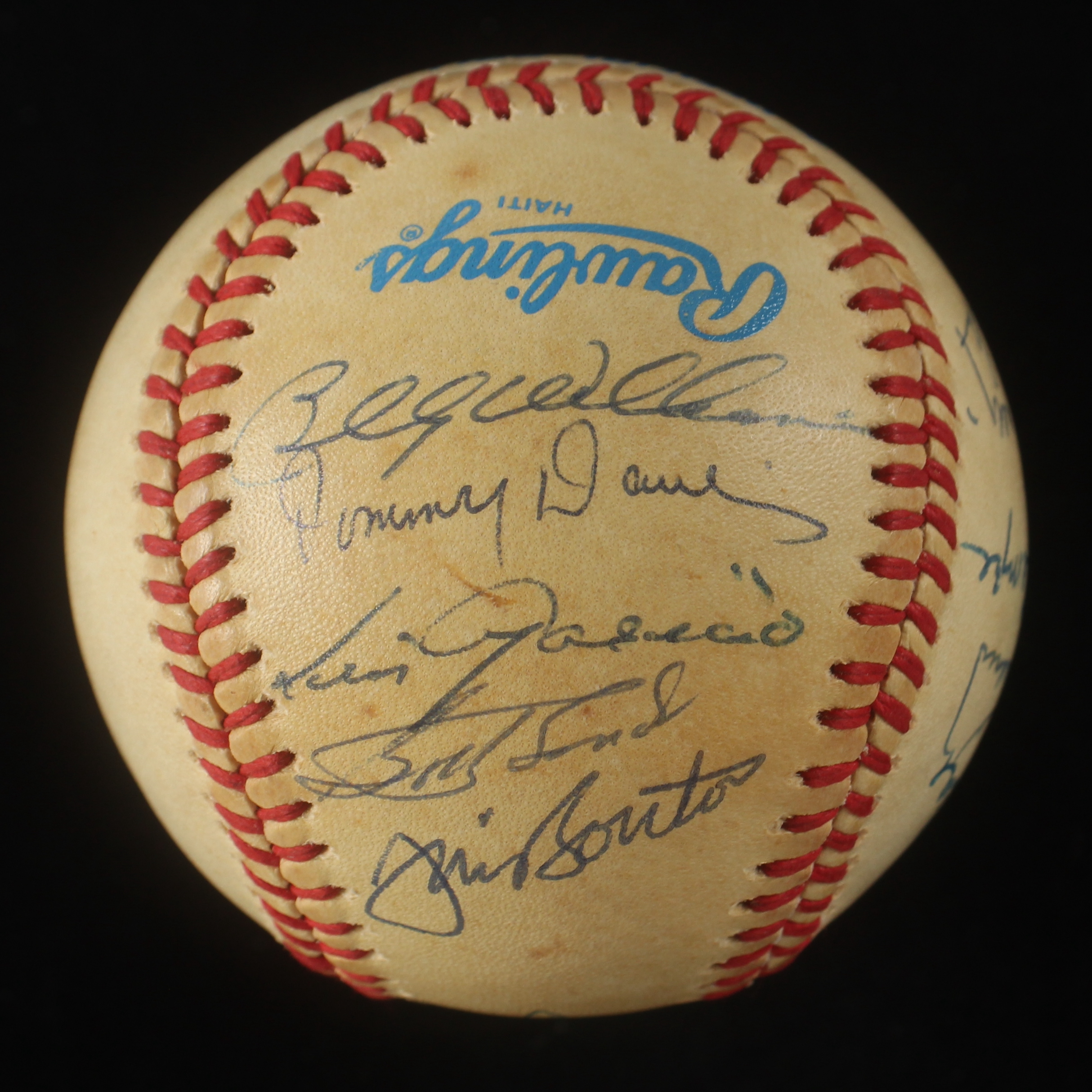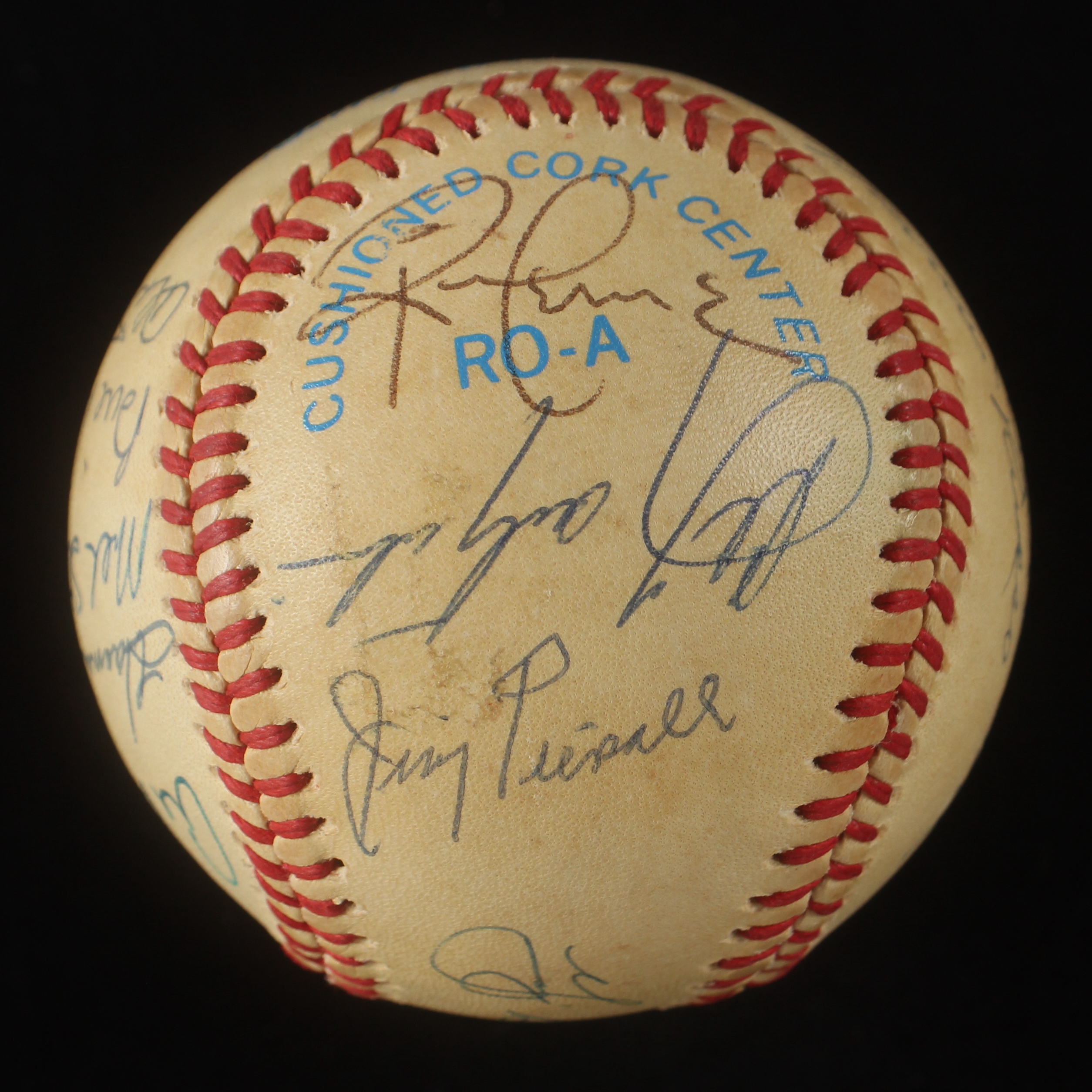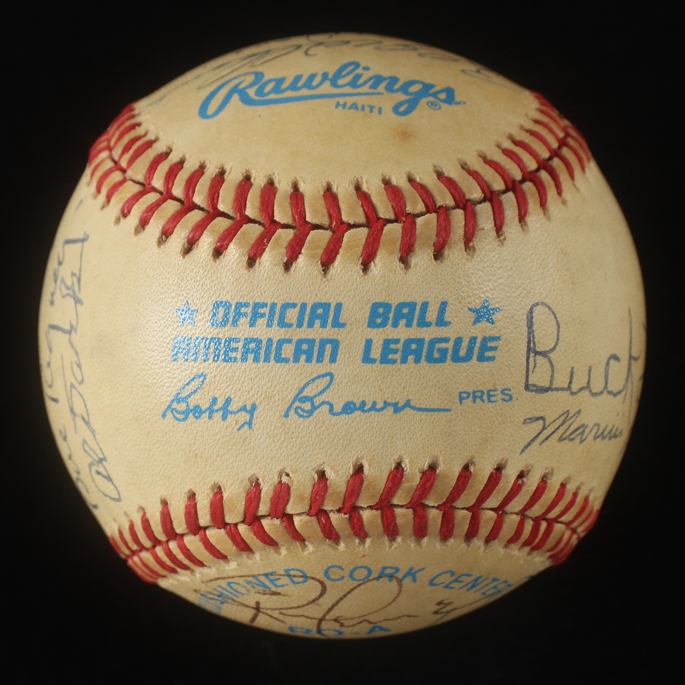 Rawlings Official American League Baseball has been hand-signed by (16) Baseball Greats with Yogi Berra (HOF), Buck Leonard (HOF), Al Kaline (HOF), Harmon Killebrew (HOF), Billy Williams (HOF), Luis Aparicio (HOF), Carl Yastrzemski (HOF), Mel Stottlemyre, Marius Russo, and (7) others.
