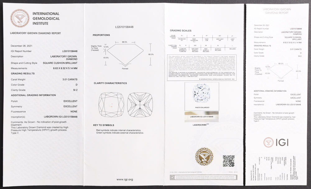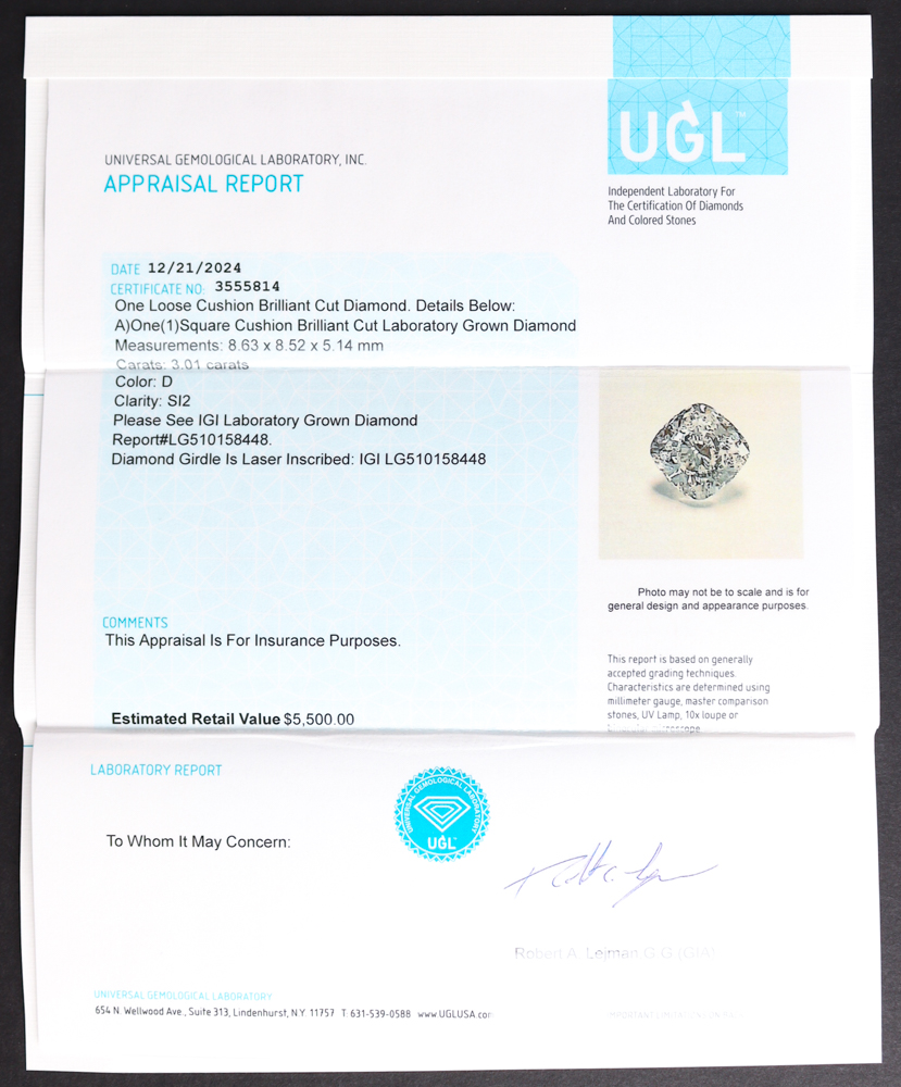3.01 CTW Laboratory Grown Diamond D, SI 2 | Estimated Value $5,500 (UGL & IGI)