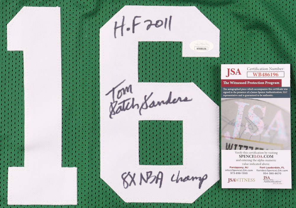 Tom "Satch" Sanders Signed Jersey Inscribed "HOF 2011" & "8x NBA Champ"(JSA)