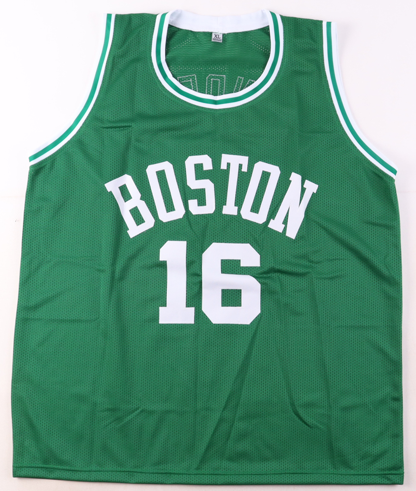 Custom jersey. Everything is sewn on, size XL. Hand-signed and inscribed by Tom Sanders (HOF).