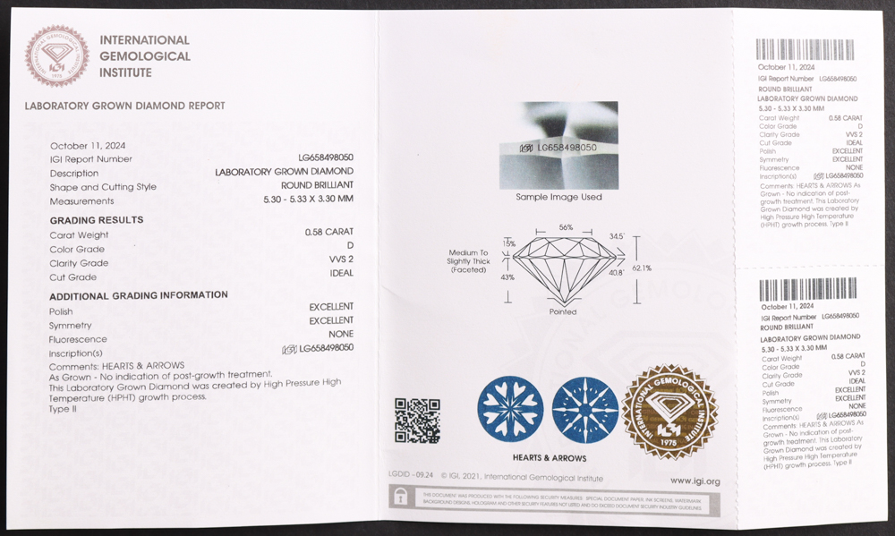 0.58 CTW Laboratory Grown Diamond D, VVS 2 (IGI)
