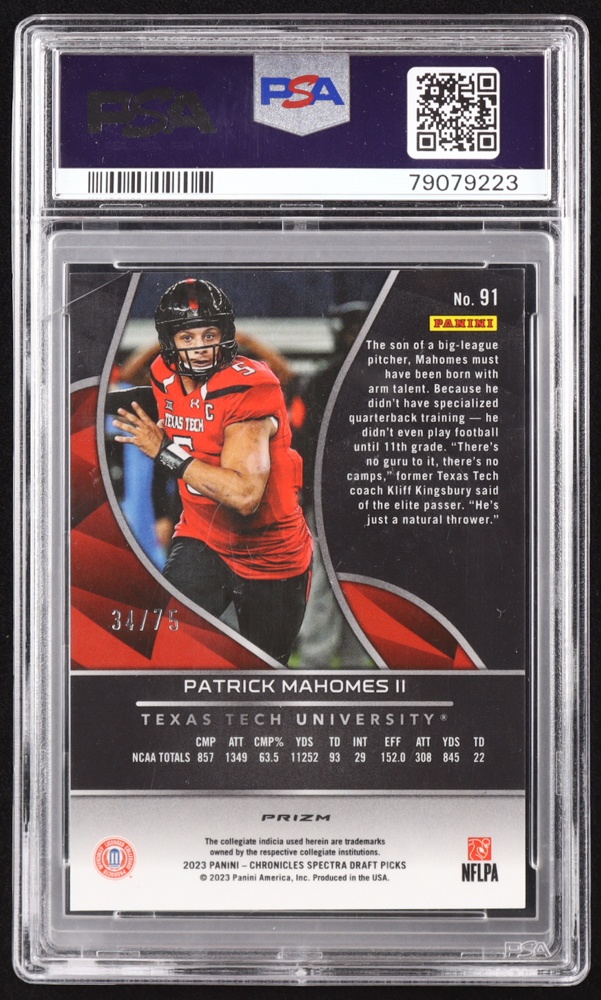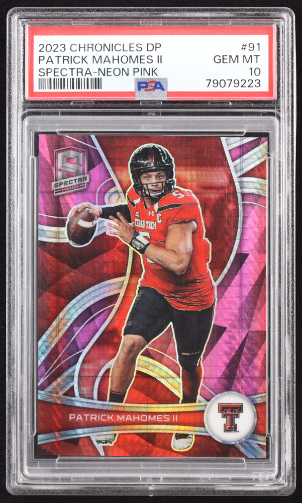 Patrick Mahomes II 2023 Panini Chronicles Draft Picks Spectra Neon Pink #91 #34/75 (PSA 10)