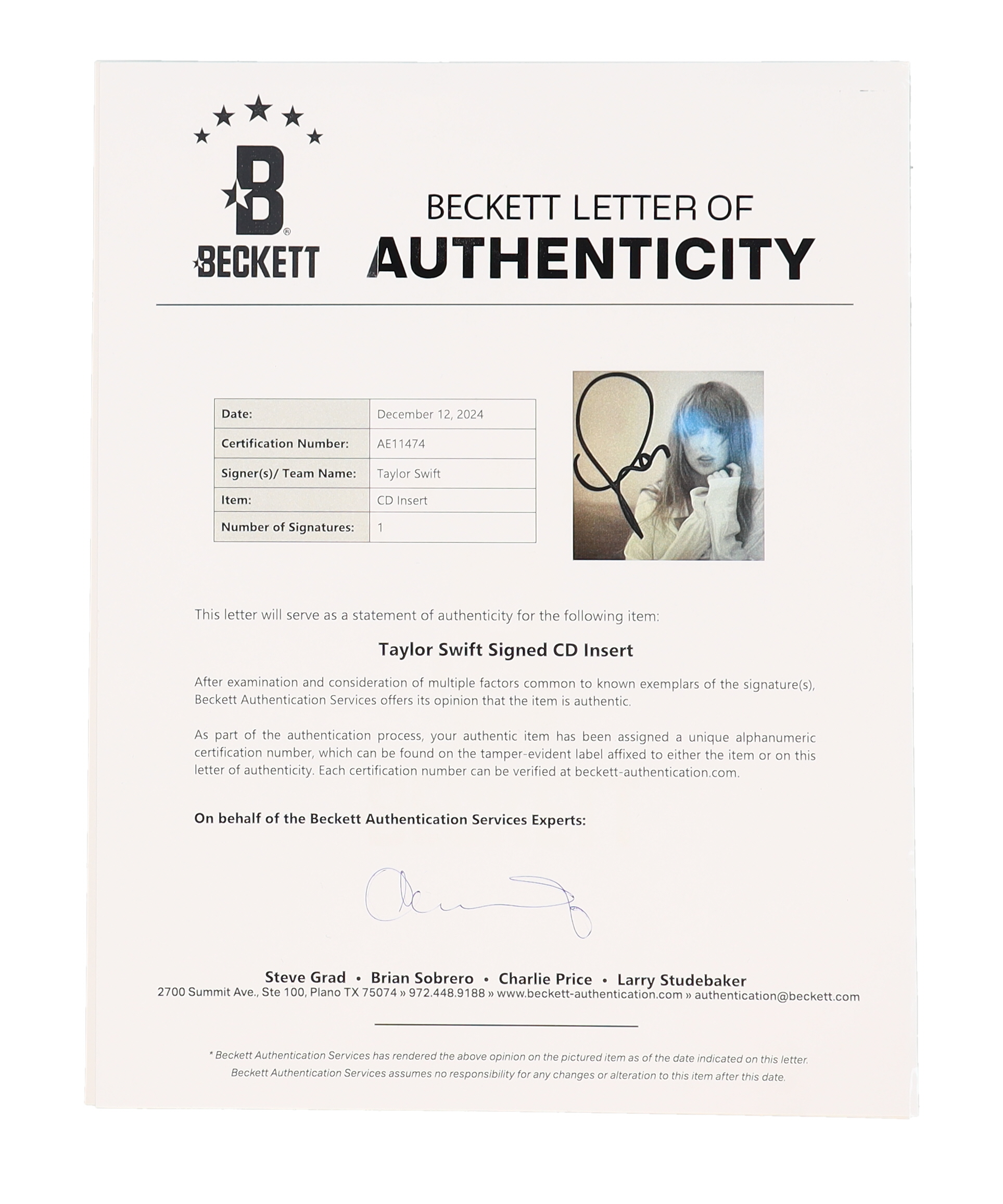 Taylor Swift Signed "The Tortured Poets Department" Album CD Insert With Case (Beckett)