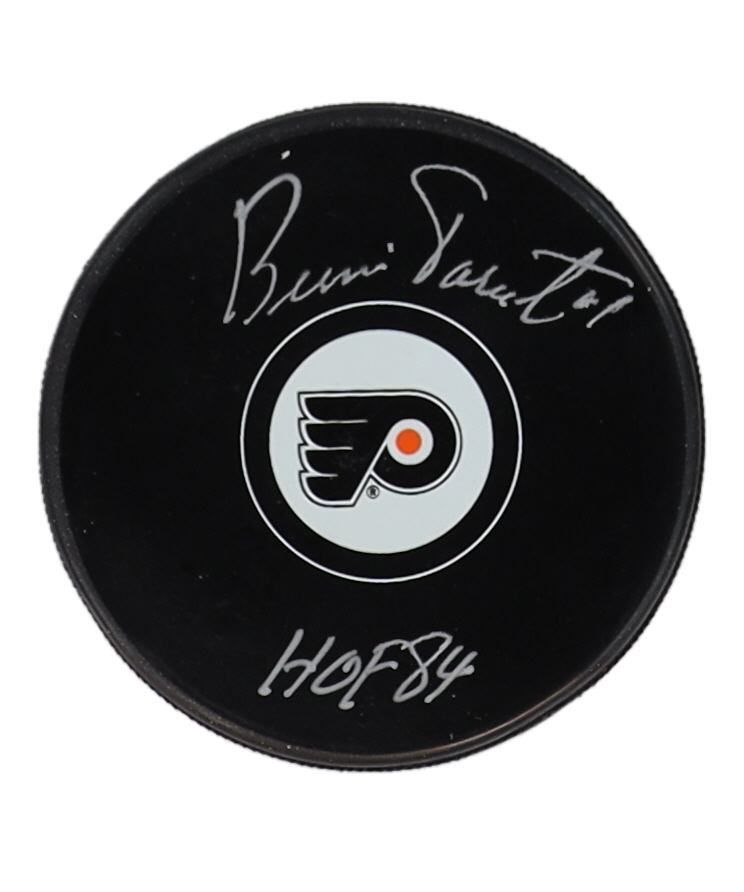 Bernie Parent Signed Flyers Logo Hockey Puck Inscribed "HOF 84" (Schwartz & Frozen Pond)
