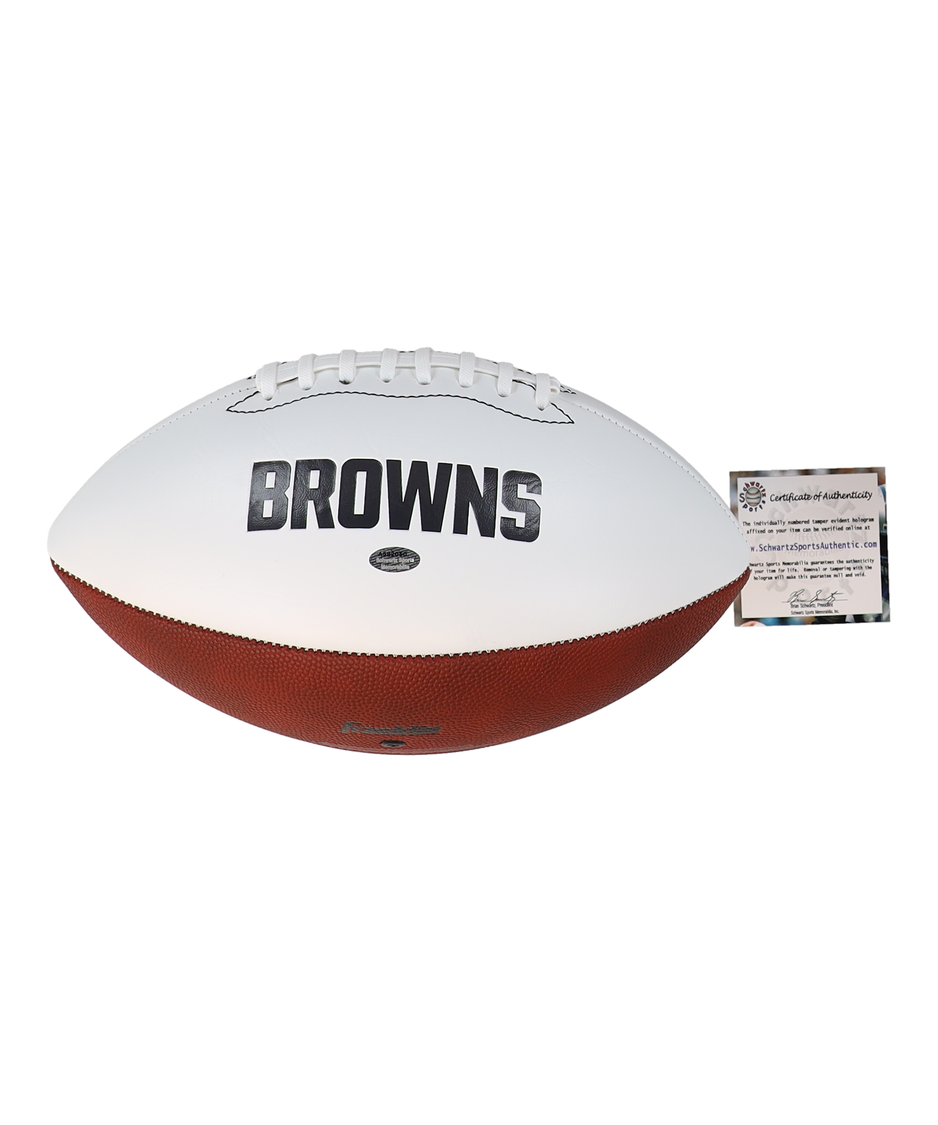 Franklin Cleveland Browns Logo Football has been hand-signed by Joe Thomas (Cleveland Browns, HOF).