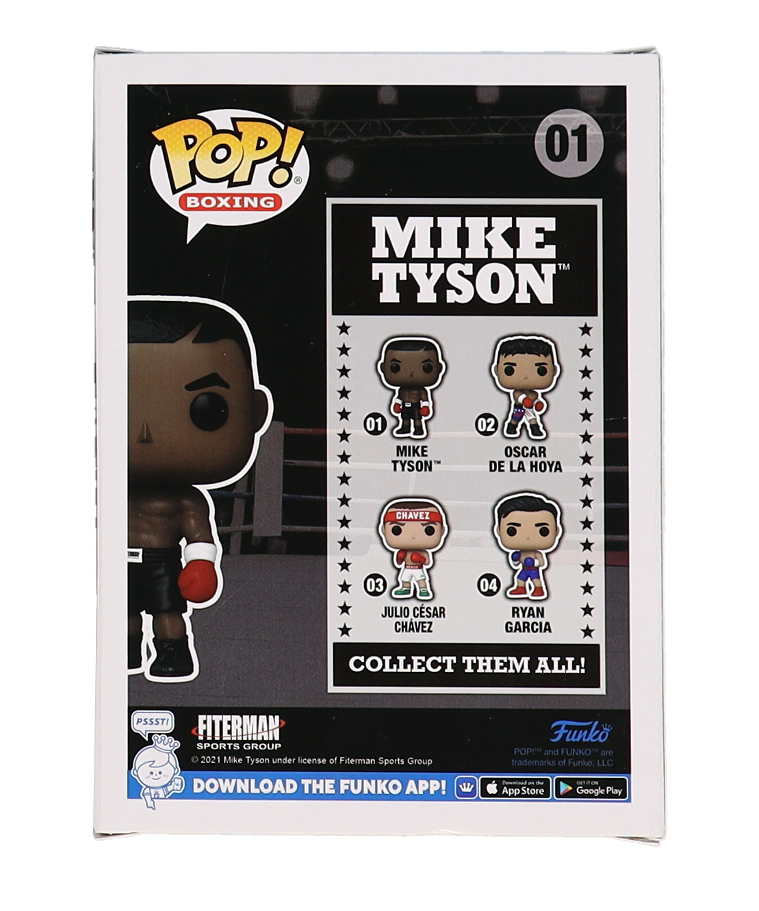 Vinyl figure measures approximately 4" tall. Hand-signed on the packaging by Mike Tyson (HOF).