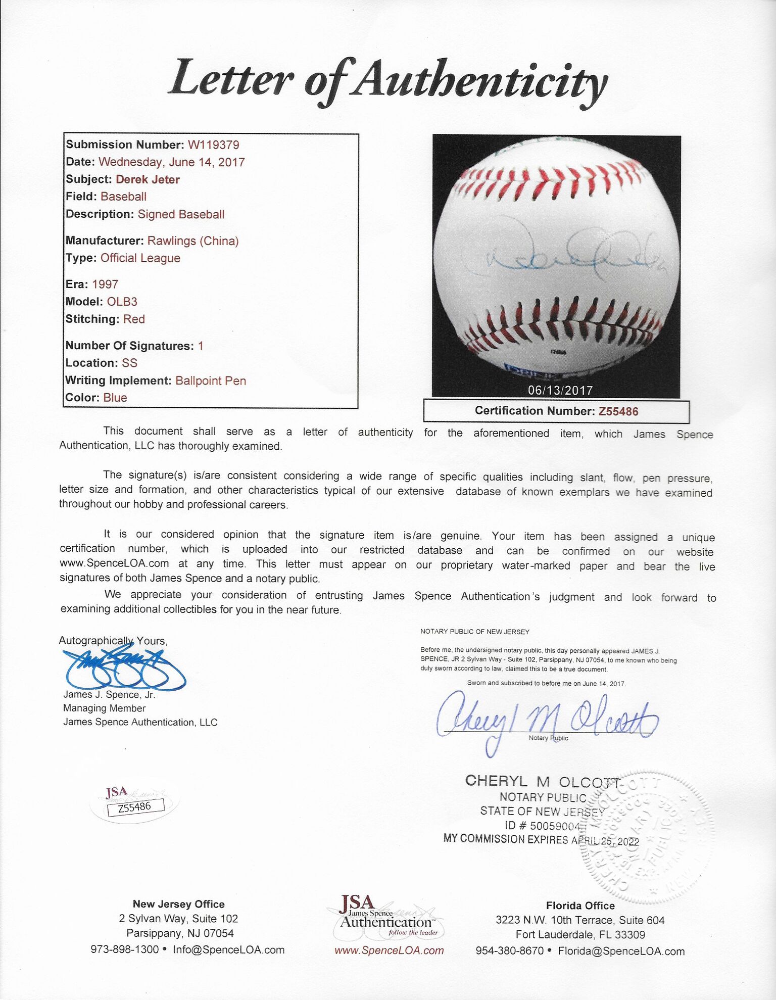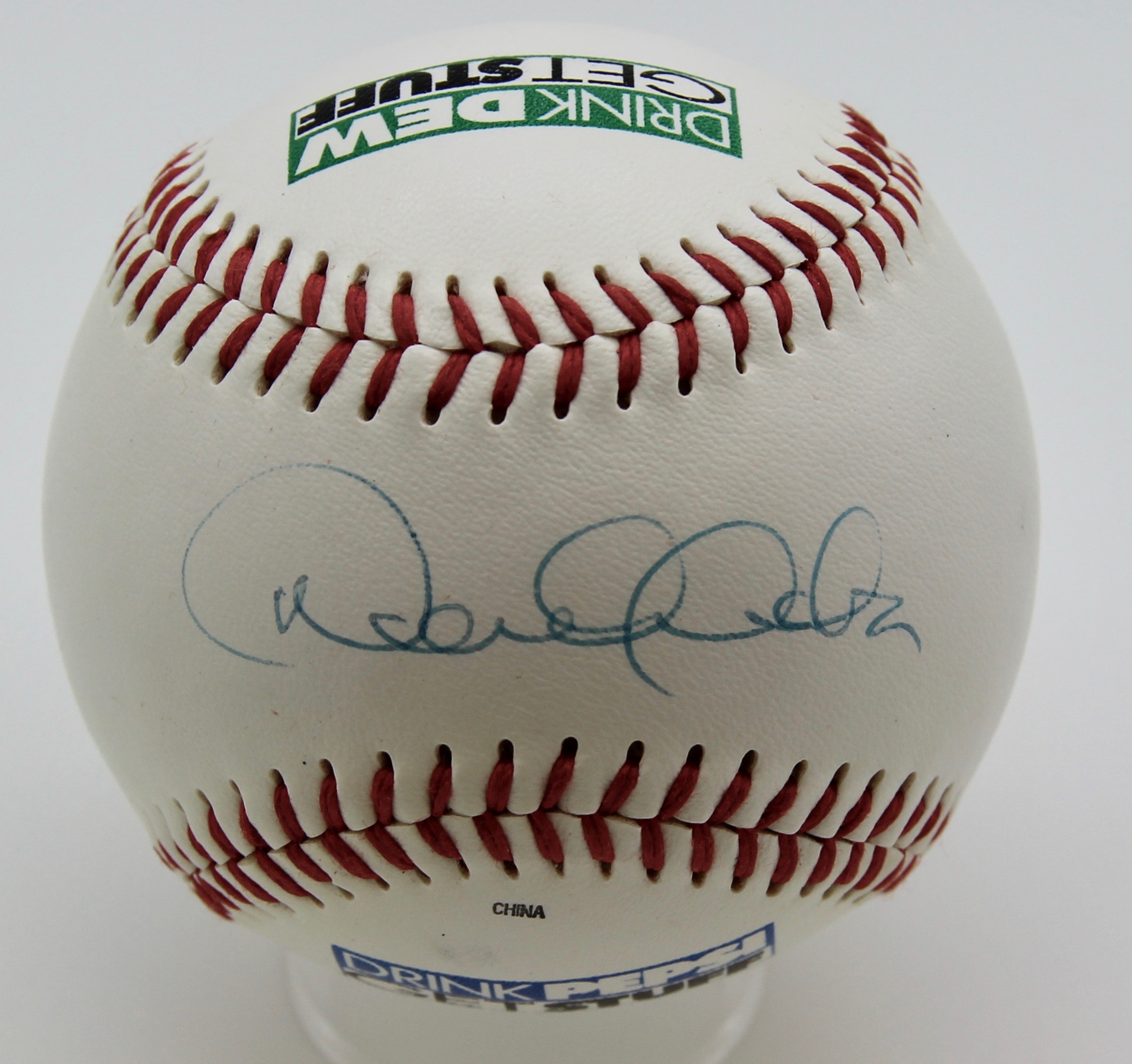 Rawlings Official League Pepsi logo baseball. Hand-signed in blue ink pen by Derek Jeter (Yankees). A total of 180 Pepsi logo baseball were signed by Derek Jeter in 1997.