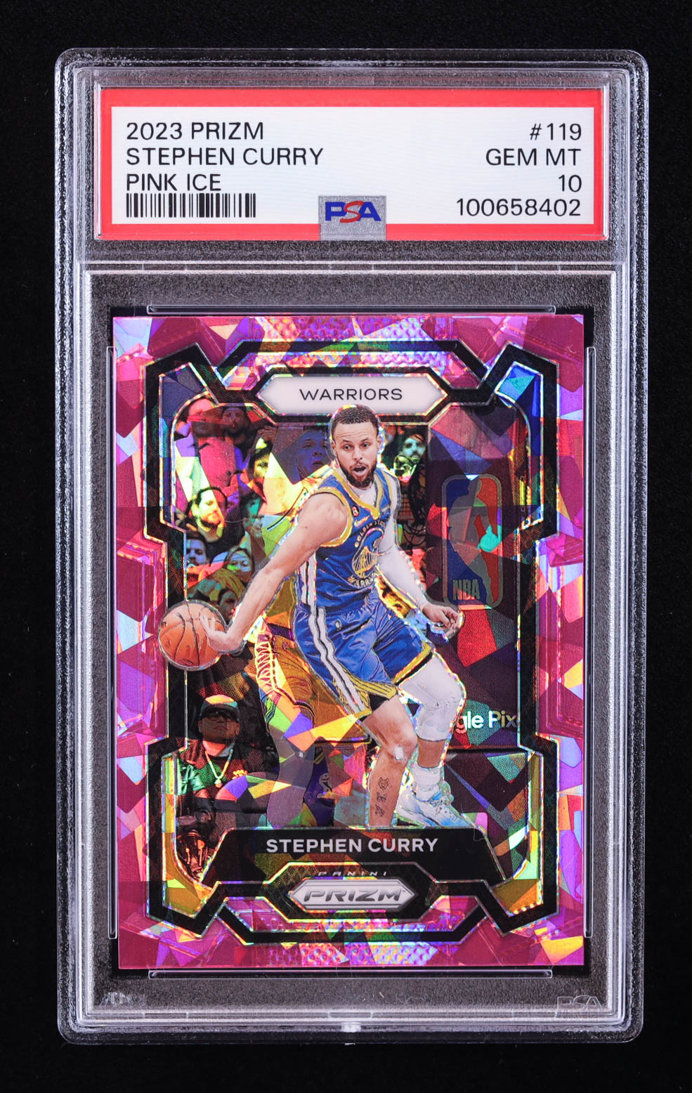 Stephen Curry 2023-24 Panini Prizm Prizms Pink Ice #119 (PSA 10)