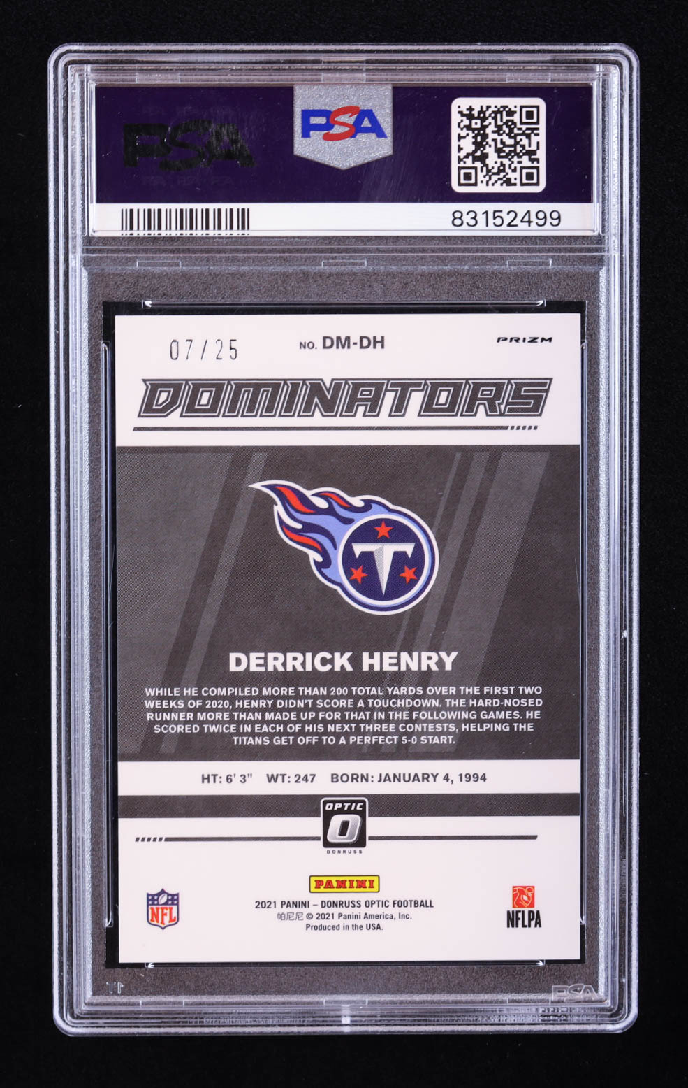 Derrick Henry 2021 Donruss Optic Dominators Black Pandora #6 #7/25 (PSA 10)