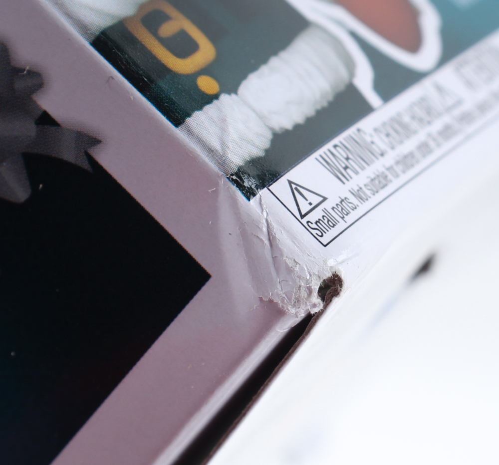 Vinyl figure measures approximately 4" tall and has been hand-signed on the packaging by Cris Carter (Philadelphia Eagles, HOF). Please note, there are tears on the corners and creases throughout the packaging.