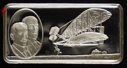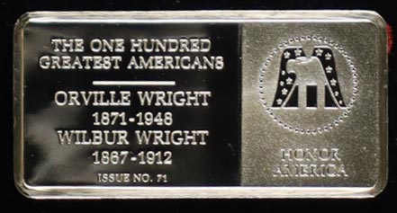 Franklin Mint One Hundred Greatest Americans: Orville & Wilbur Wright - 500 Grains Sterling (.9636 oz. Silver) Silver Bullion Bar