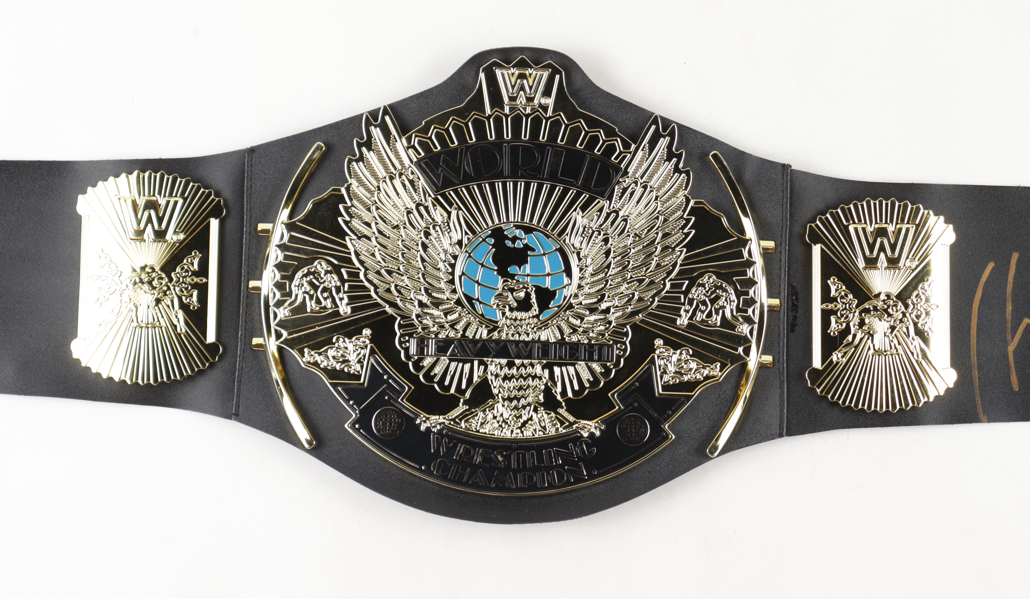 Replica WWE Championship Belt (plastic) measures 38" in size and is hand-signed by Hulk Hogan (HOF).