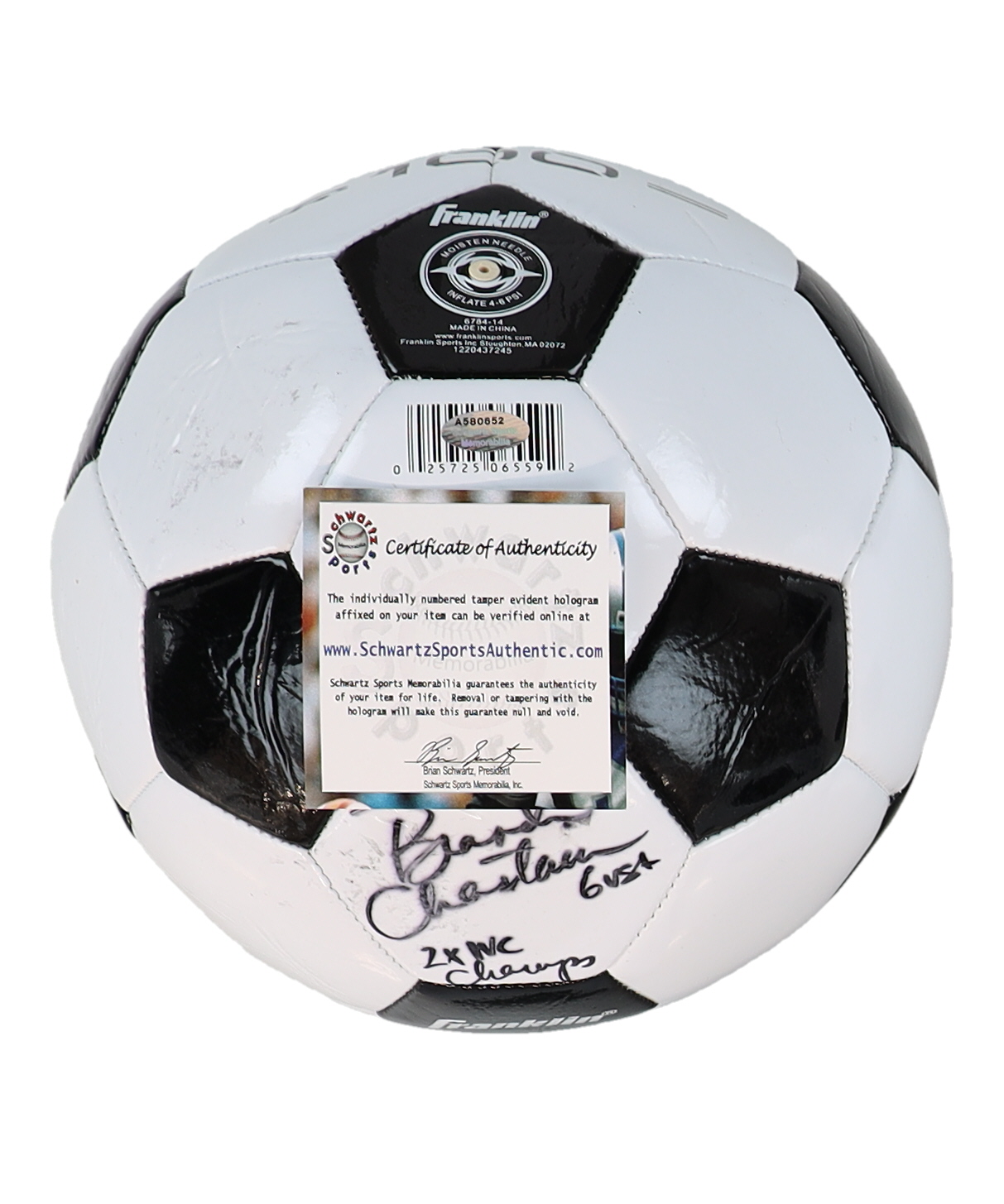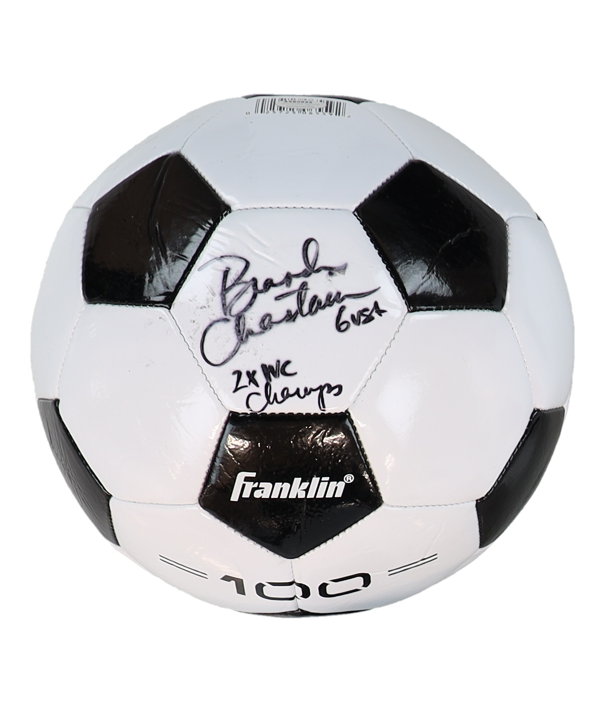 Franklin soccer ball has been hand-signed and inscribed by Brandi Chastain.