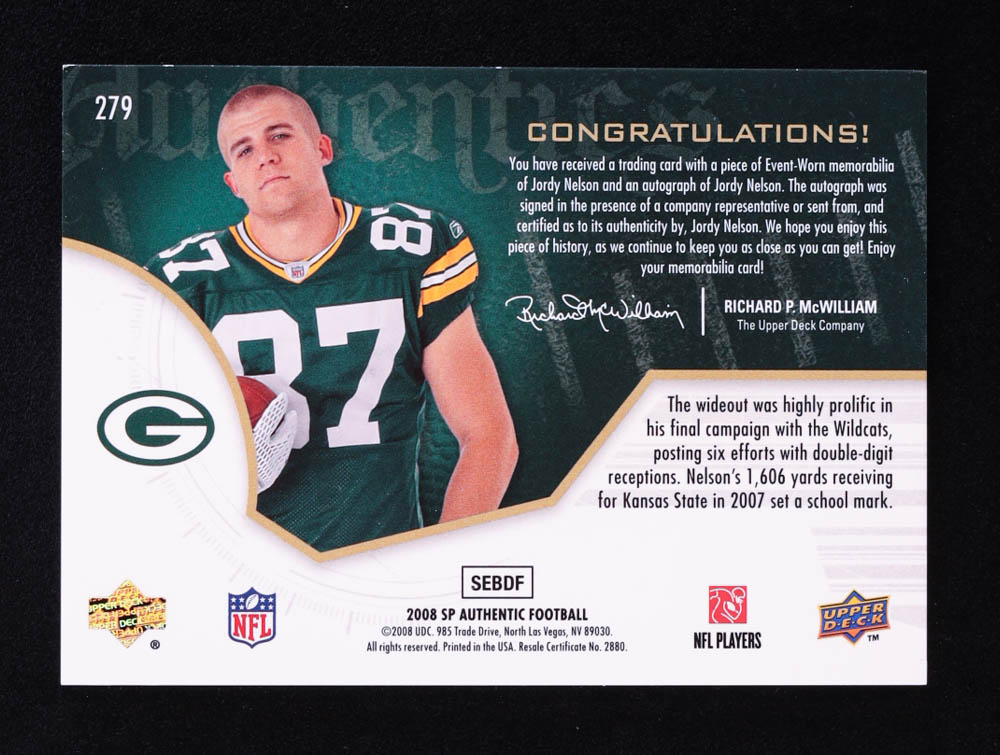 Jordy Nelson 2008 SP Authentic #279 JSY AU RC #287/999