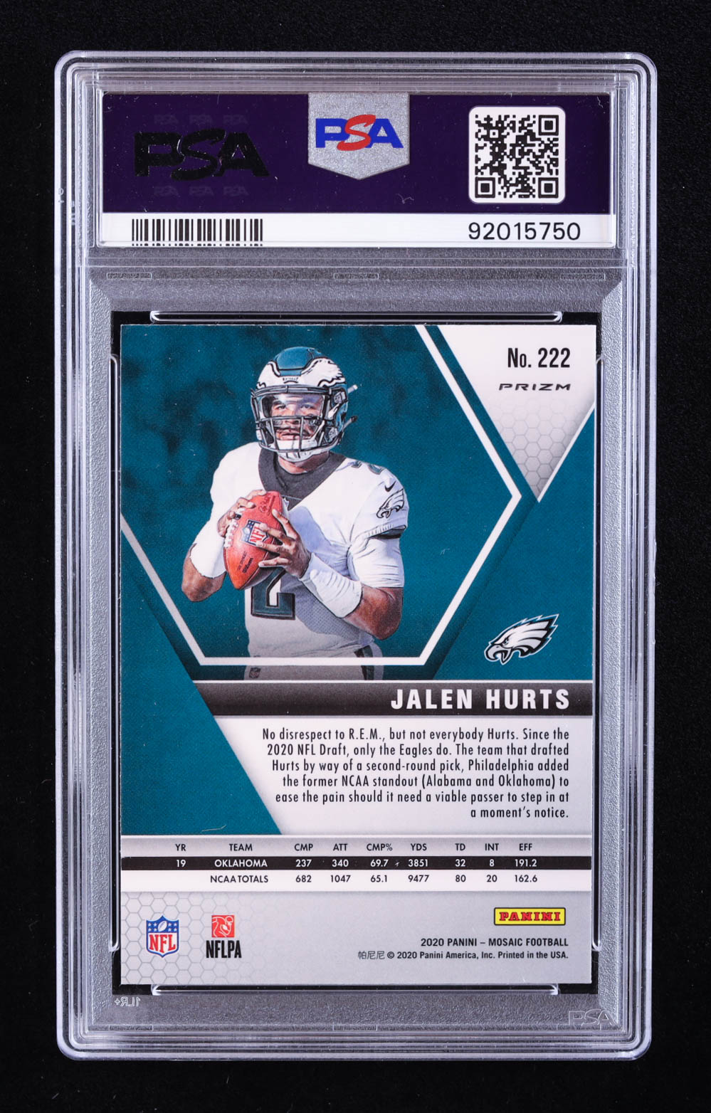 Jalen Hurts 2020 Panini Mosaic Mosaic Reactive Orange #222 RC (PSA 10)
