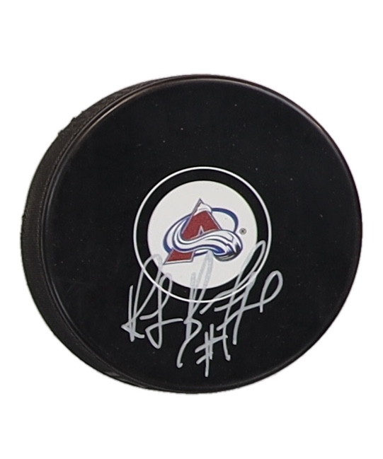 Colorado Avalanche Logo Hockey Puck has been hand signed by Ray Bourque (HOF).