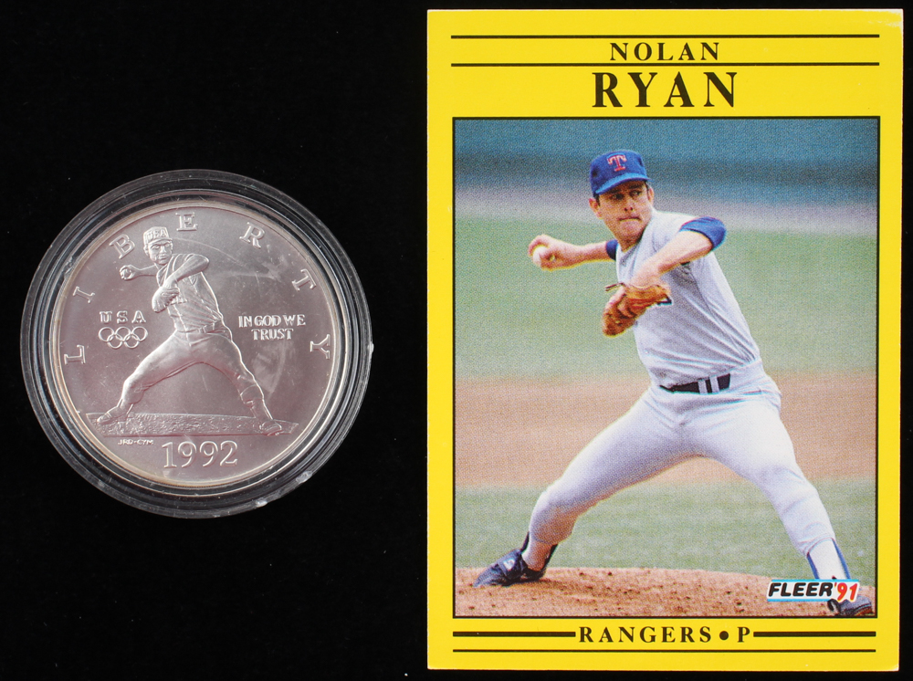 1992-D U.S. Mint $1 LE Nolan Ryan Silver Coin With 1991 Fleer #302 Trading Card