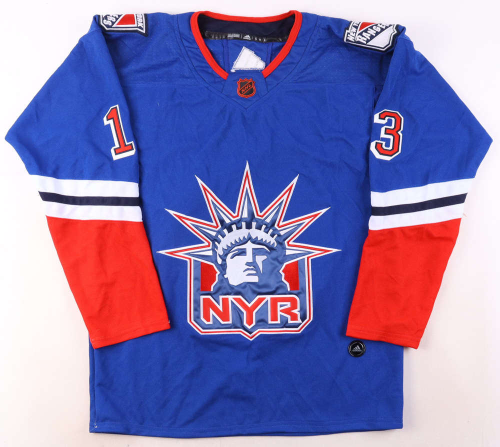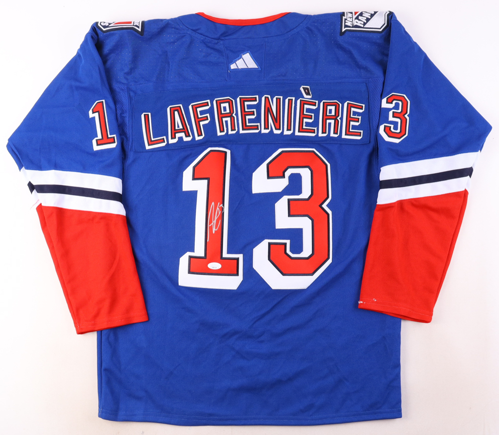 Adidas hockey jersey with the everything sewn on, size 54. Hand-signed by Alexis Lafreniere.