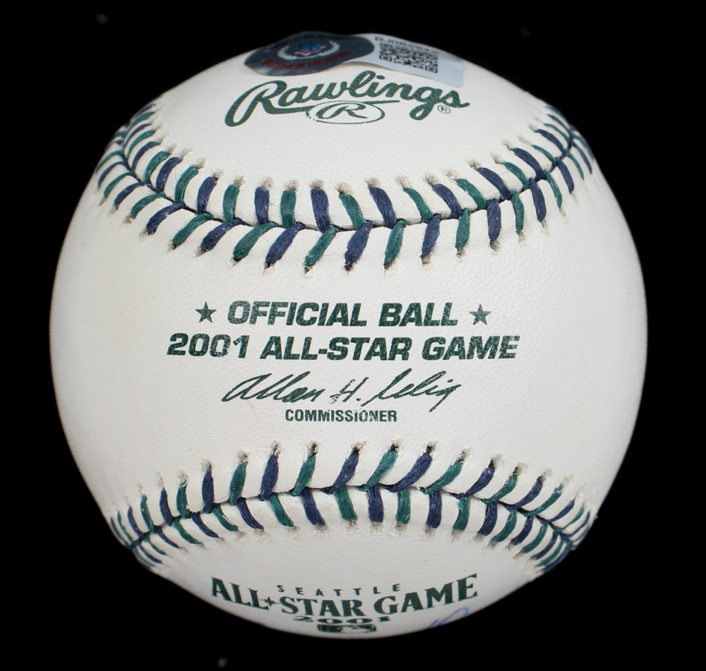 Rawlings Official 2001 All-Star Game Logo baseball. Hand-signed by Bernie Williams (New York Yankees). Please note, the signature ink has bled.