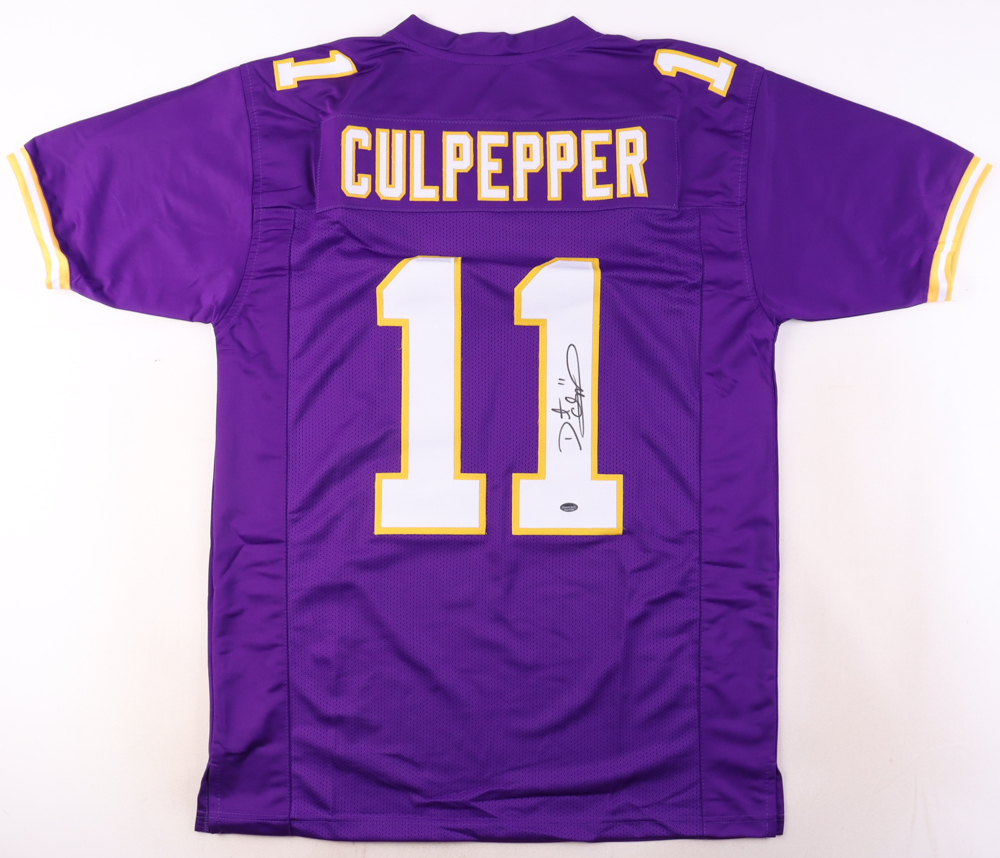 Custom jersey with everything sewn on, size XL. Hand-signed by Daunte Culpepper.