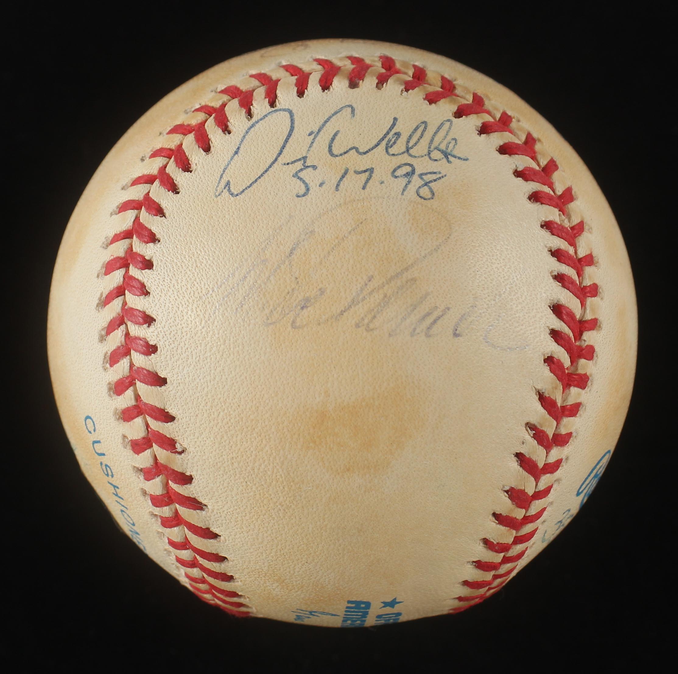Note, some signers included an inscription of the date they threw a perfect game! Signers and inscriptions featured on the baseball are: