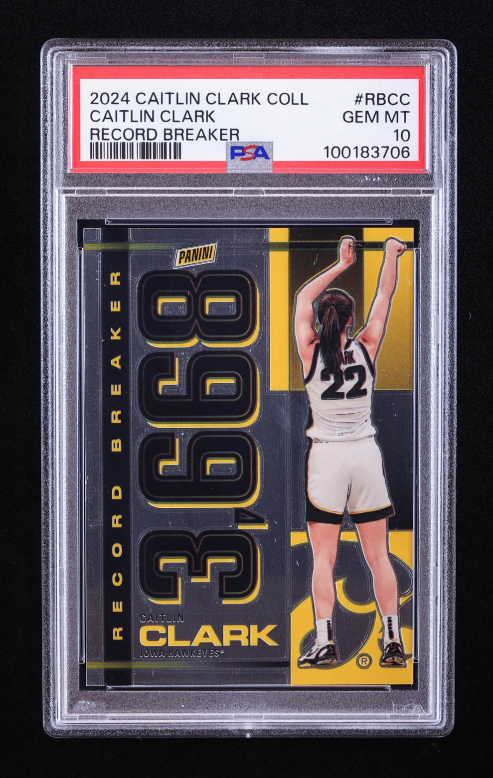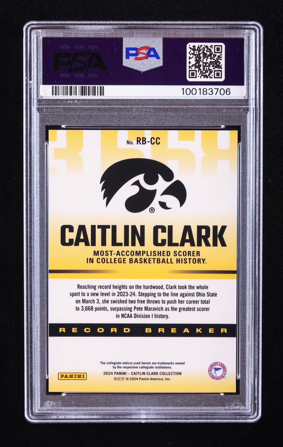 Caitlin Clark 2024 Panini Caitlin Clark Collection Record Breaker #RBCC RC (PSA 10)