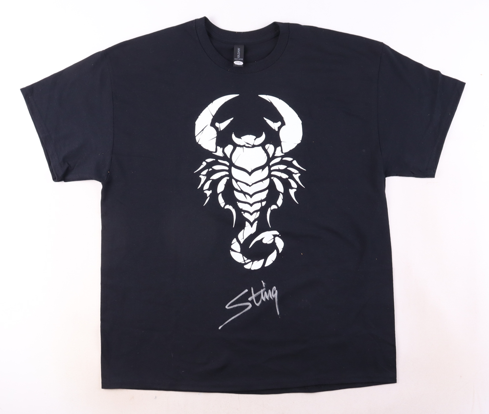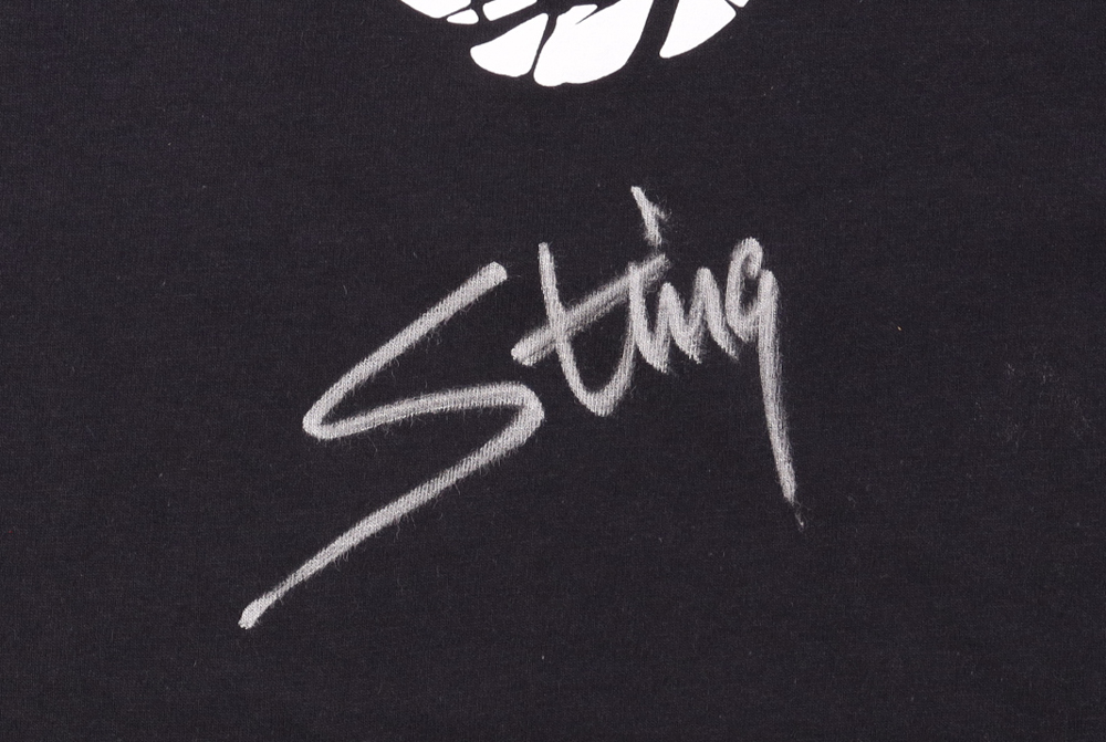 Gildan T-shirt with everything printed on, size XL. Hand-signed by Sting.