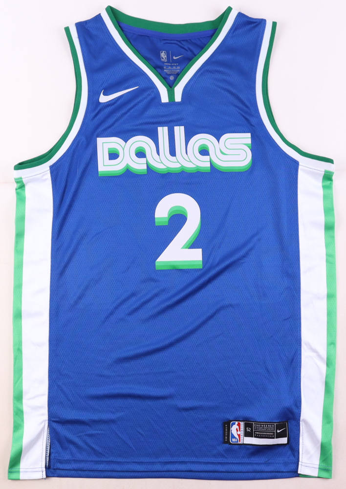 Nike jersey with everything pressed on, size L. Hand-signed by Kyrie Irving (Dallas Mavericks).