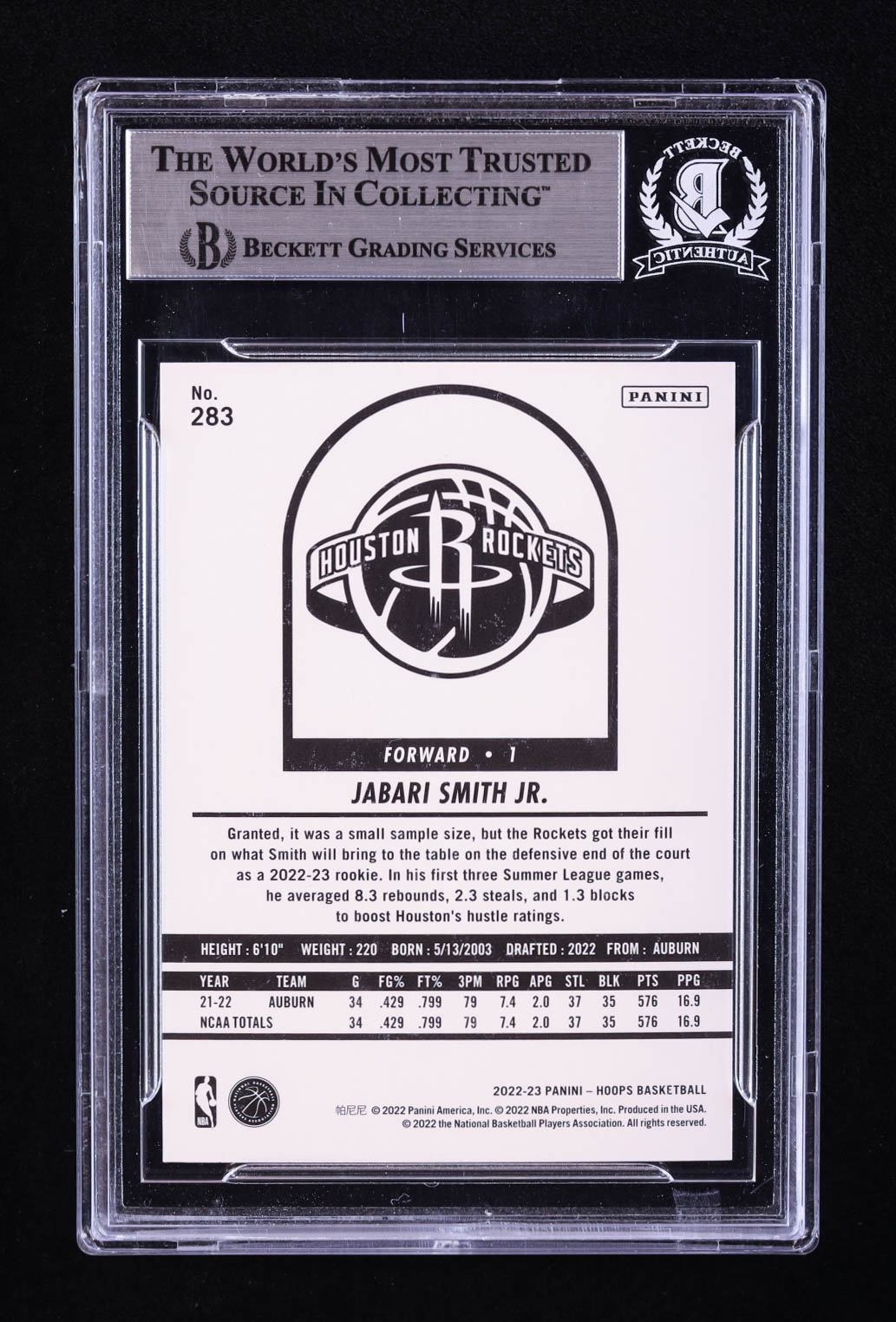 Jabari Smith Jr. Signed 2022-23 Hoops #283 RC (BGS)