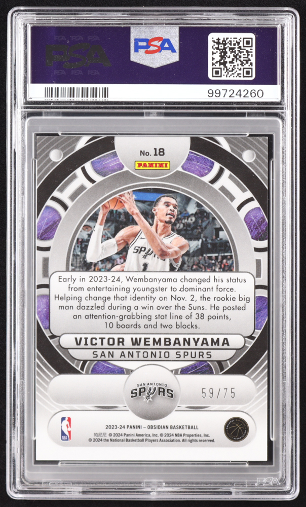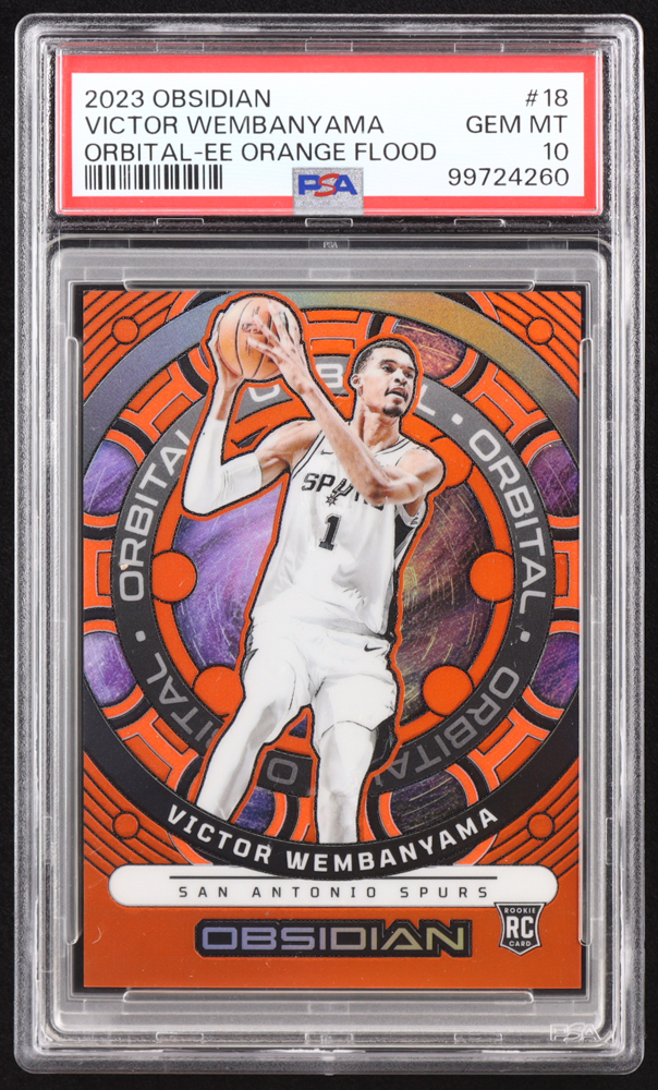 Victor Wembanyama 2023-24 Panini Obsidian Orbital Electric Etch Orange Flood #18 #59/75 RC (PSA 10)