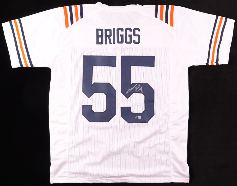 Custom jersey with everything sewn on, size XL. Hand-signed by Lance Briggs.