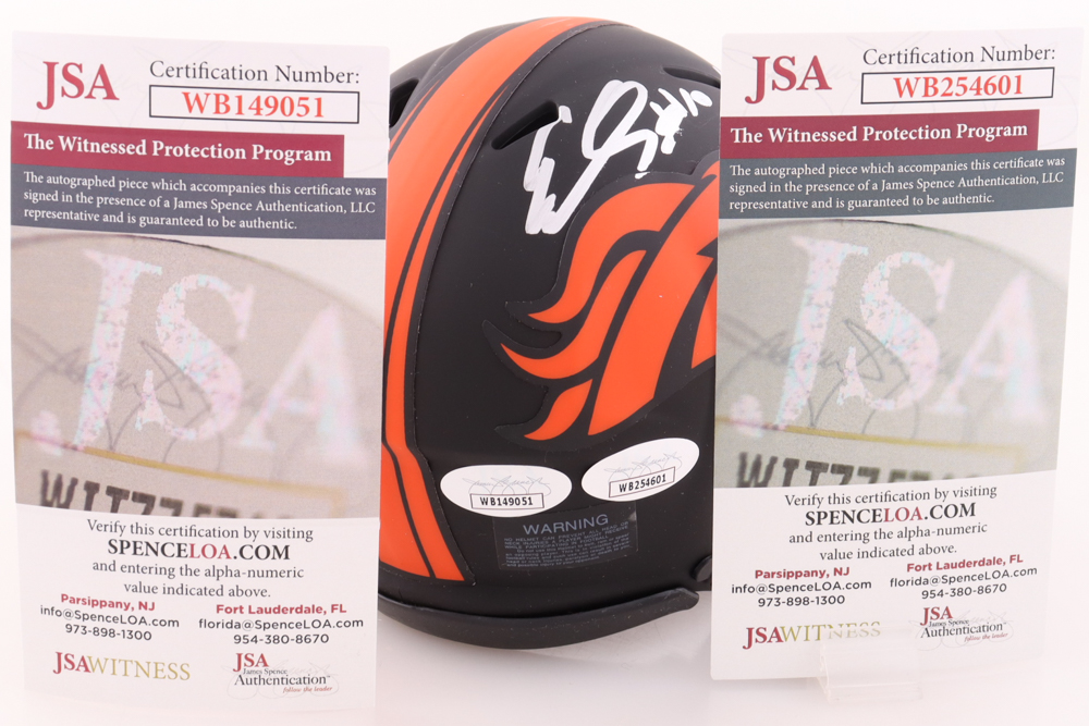 Emmanuel Sanders & TJ Ward Signed Broncos Eclipse Alternate Speed Mini Helmet (JSA)