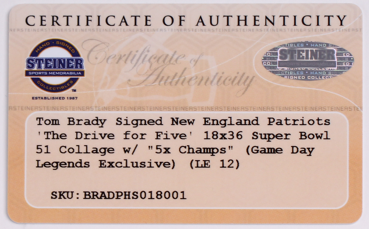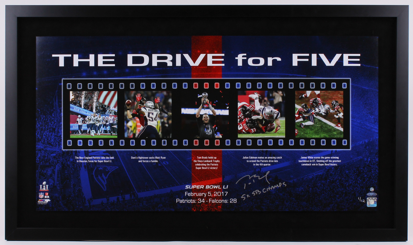 Tom Brady Signed Limited Edition Patriots "The Drive for Five" 24" x 41" Custom Framed Photo Display Inscribed "5x SB Champs" #1/12 (Steiner COA & Tristar Hologram)