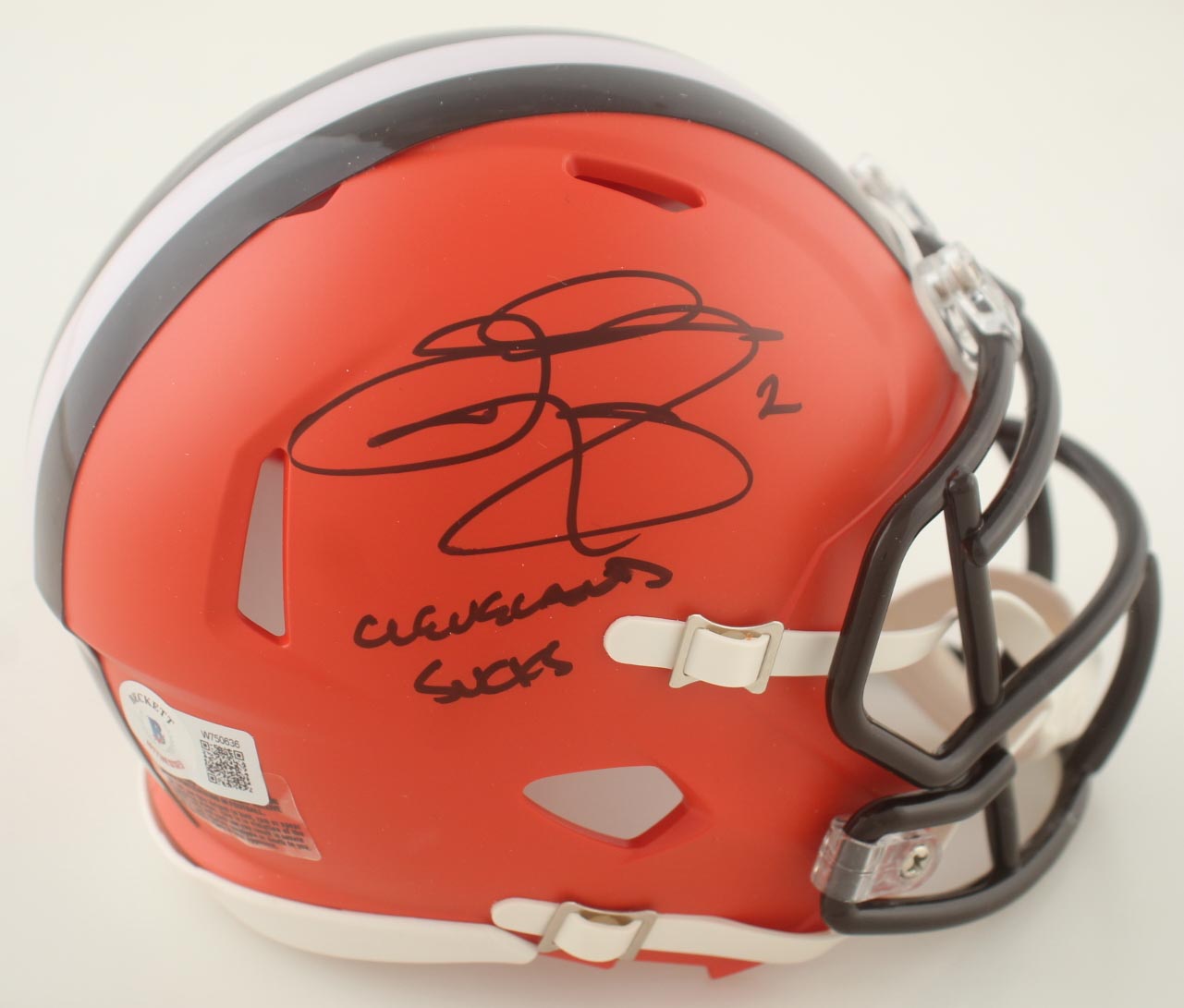Johnny Manziel Signed Browns Speed Mini Helmet Inscribed "Cleveland Sucks" (Beckett)