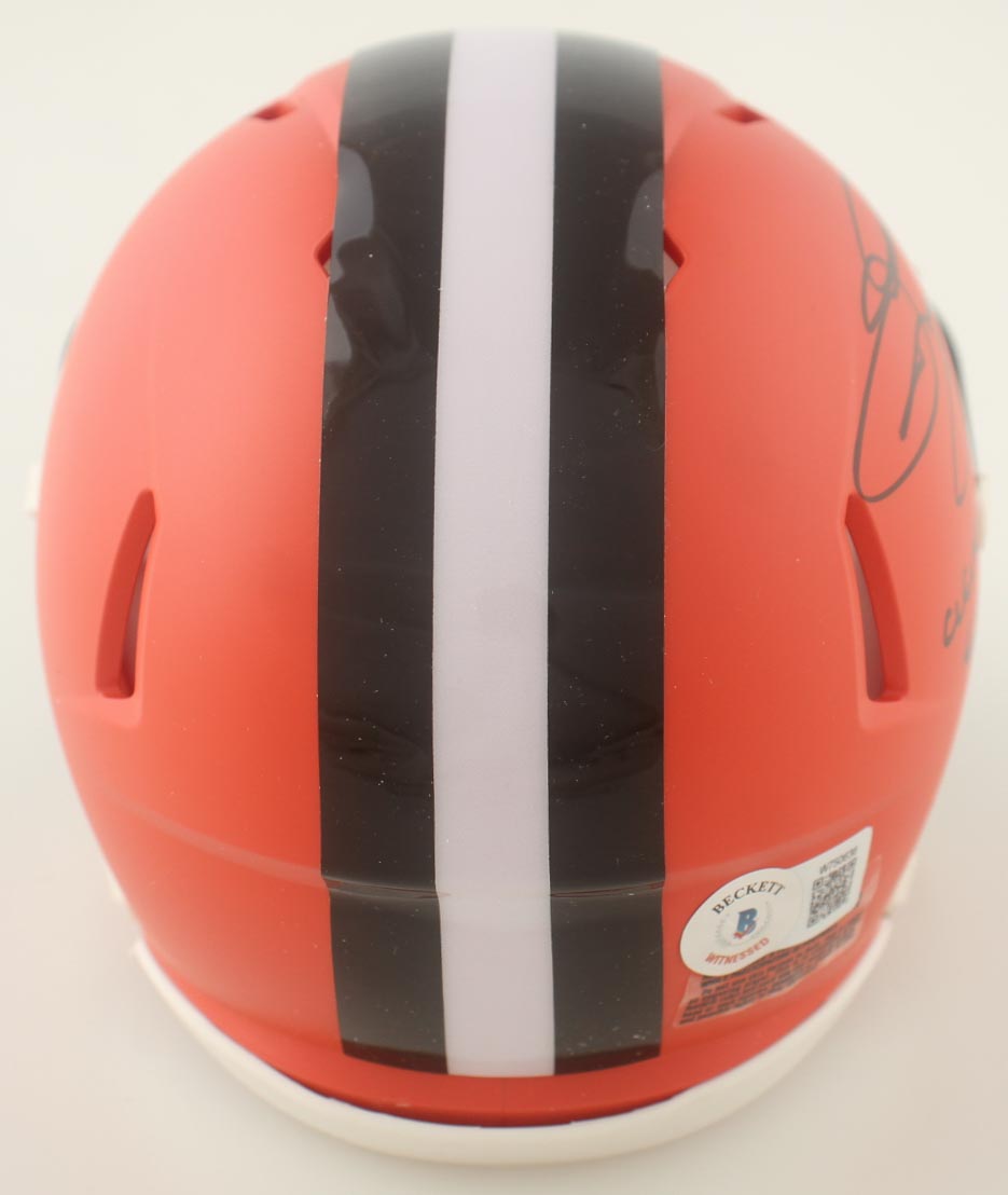Riddell Cleveland Browns Speed mini helmet. Hand-signed and inscribed by Johnny Manziel.