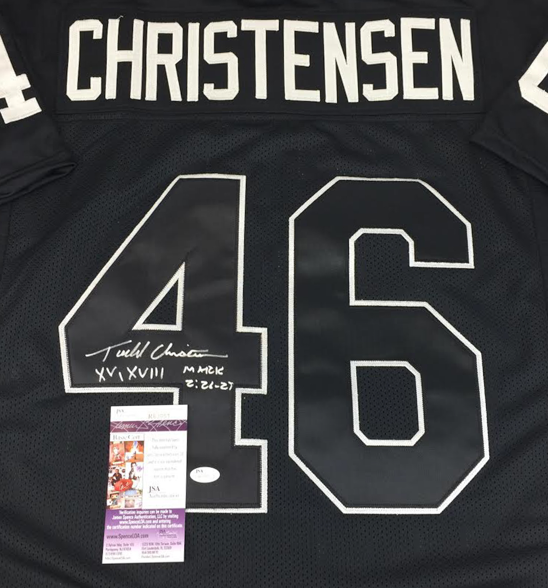 Todd Christensen Signed Raiders Jersey Inscribed "XV, XVIII" (JSA COA)