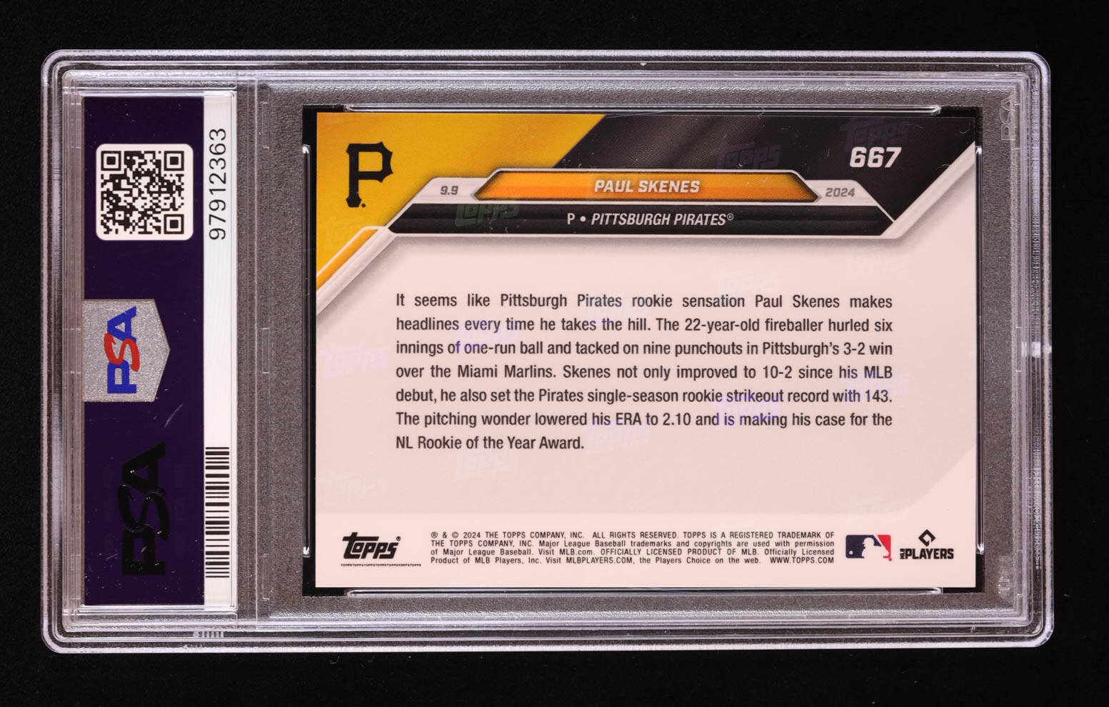Paul Skenes 2024 Topps Now #667 RC (PSA 10)