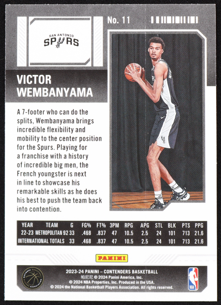 Victor Wembanyama 2023-24 Panini Contenders #11 RC